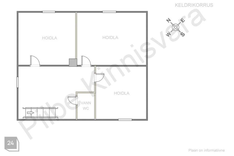 Maja keldris on vannituba ja kolm suurt ruumi, mida saab erinevatel otstarvetel kasutada. Kuna keldri lae kõrgus on 2.10m ja olemas on vesi ja kanalisatsioon, siis soovikorral saaks keldrisse näiteks ka sauna koos basseiniga rajada.