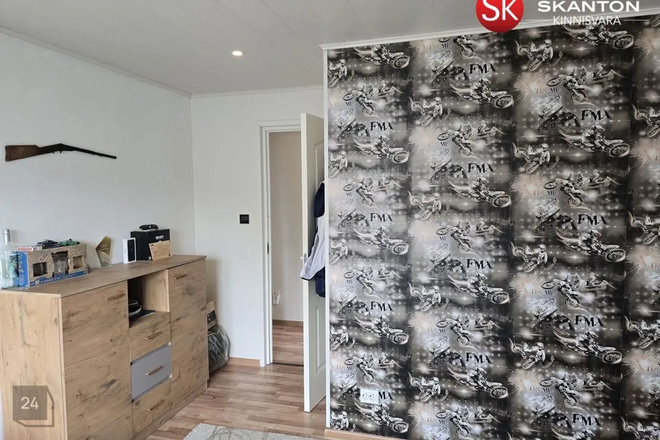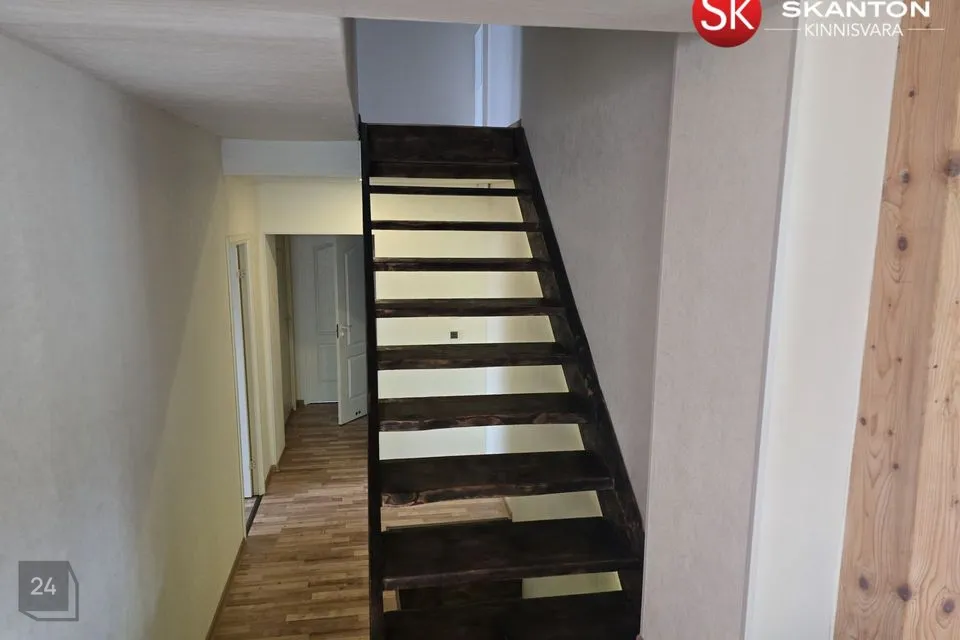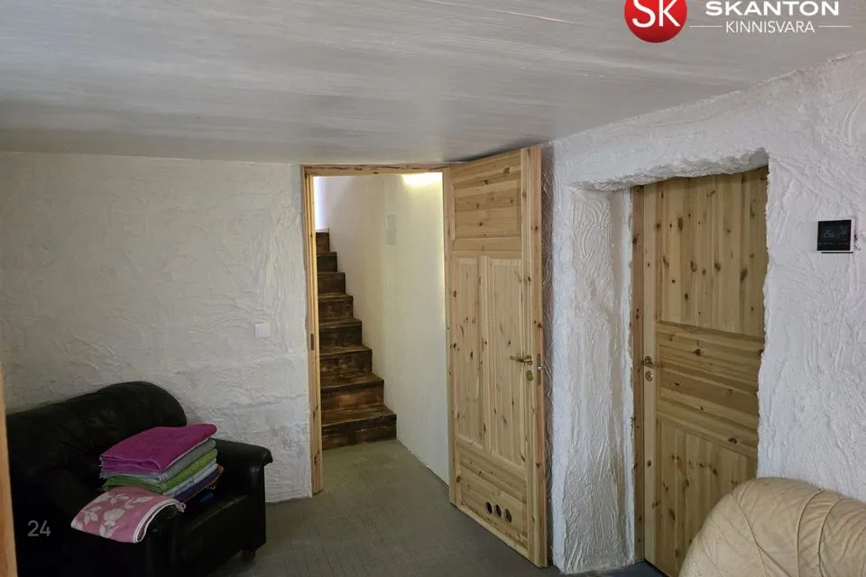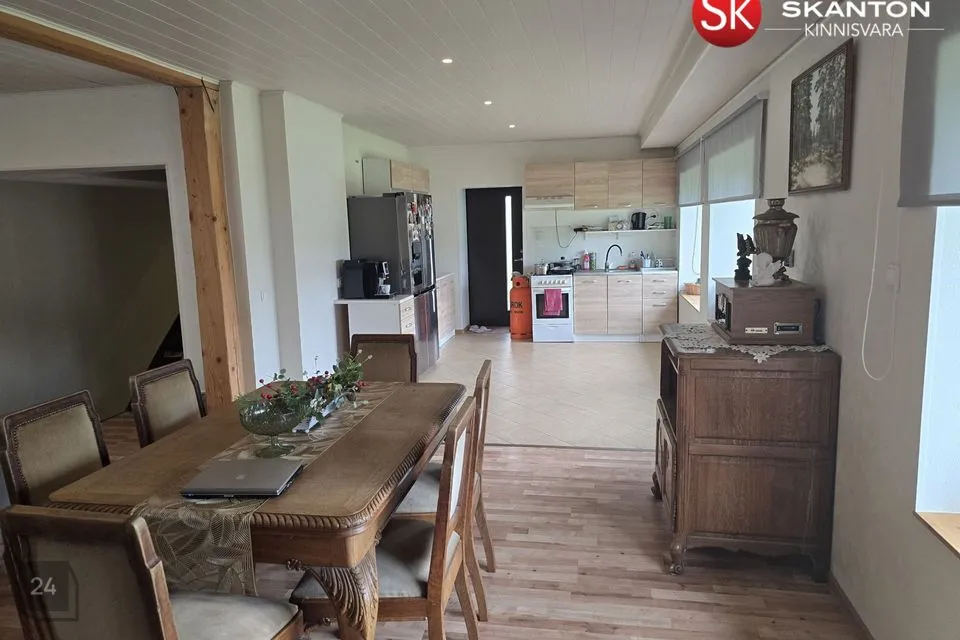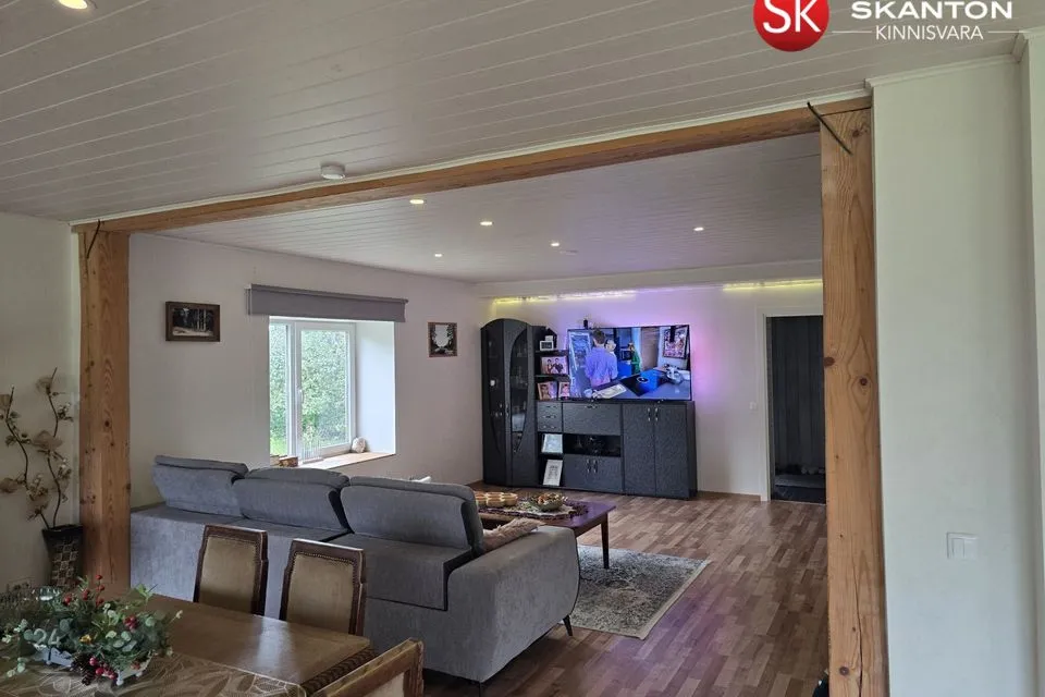 Köögi ja san. ruumide põrandad on kaetud keraamilise plaadiga. Ülejäänud põrandad on kaetud laminaatparketiga. Seinad krohvitud ja värvitud. Osalt majas on kasutatud puitmaterjali, mis annab interjöörile unikaalse välimuse ja lisab looduslikku soojust.