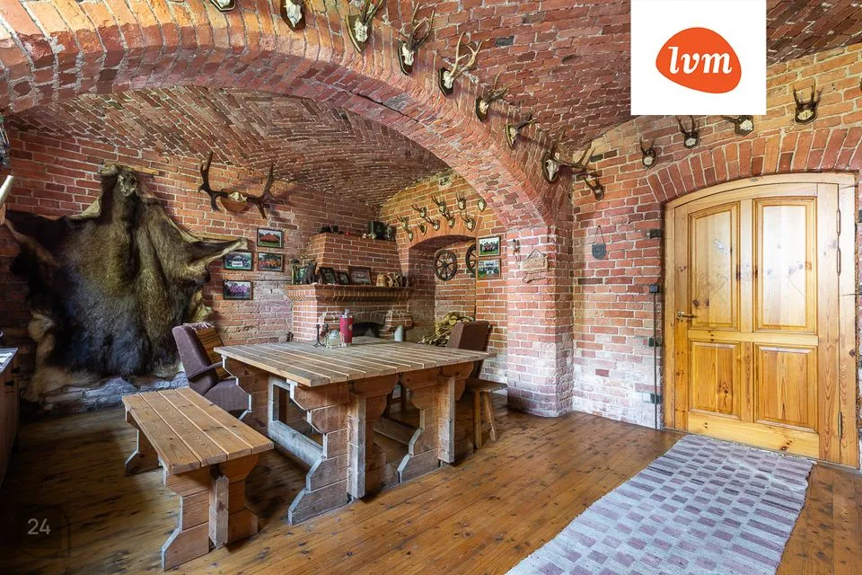 Osaliselt kasutusel on renoveeritud 19. sajandi ahjud ning fuajeest viib teisele korrusele Riias valmistatud Tartu Ülikooli peahoonestki leitav metallist keerdtrepp. Põhikorrusel on 2 magamistuba, vannituba, suur köök, söögituba, kontor, elutuba ja puhketuba. Ruumid on ajastutruult renoveeritud ja sisustatud. Põhikorruse elutoast pääseb maja taga olevale suurele terrassile, mis on ideaalne istumiskoht soojemate ilmadega.