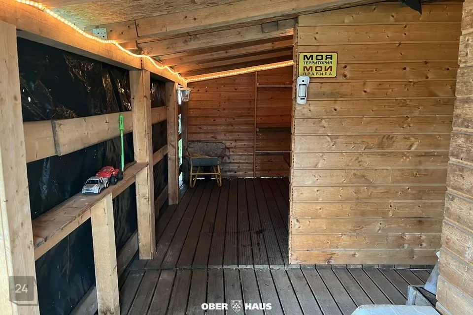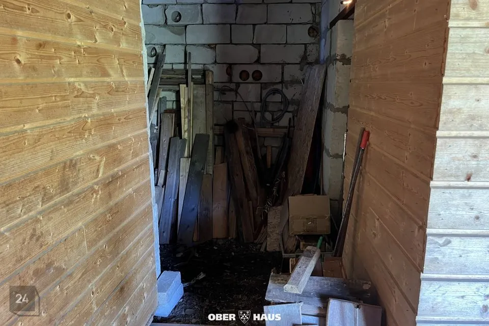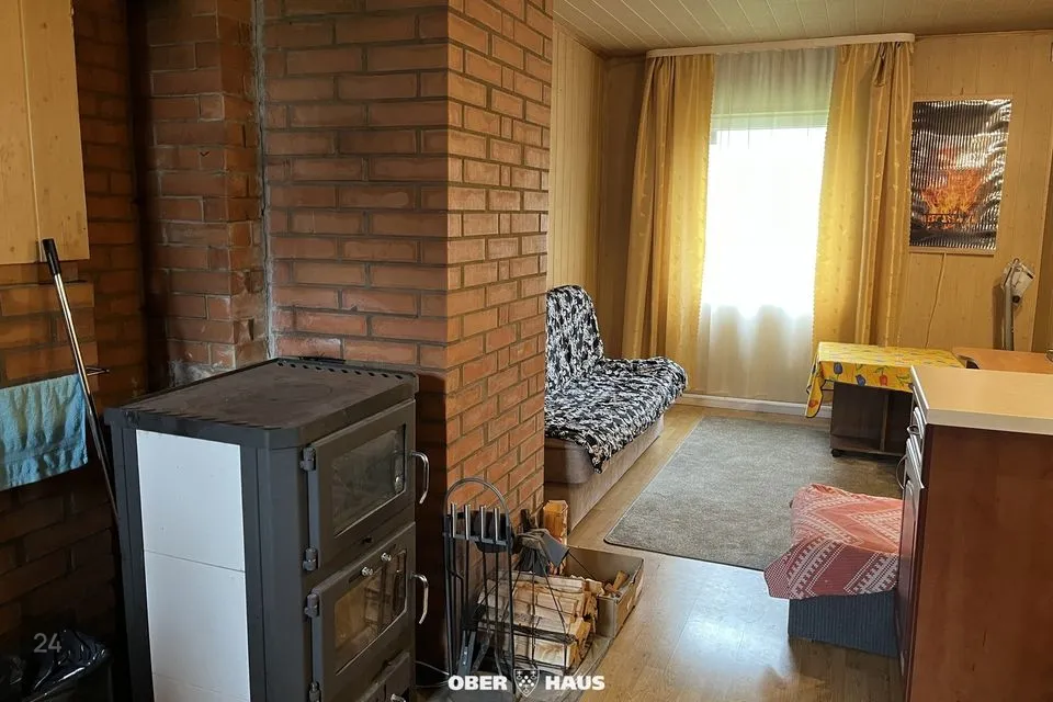 Esimesel korrusel esik, avatud köögiga elutuba, magamistuba, duši- ja WC-ruum, kaminaga tuba (ehitusjärgus) ; saun ja garaaž (väravad tõstemehhanismiga ja puldiga, põrand betoonist) .