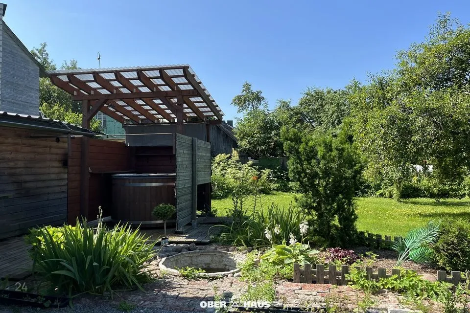 Kinnistul terrass Jaapani sauna ja lõõgastusalaga, kasvuhoone, kelder ja töökoda. Aias vaarikapõõsad ja kirsipuud. Hea asukoht kesklinna lähedal. Ümbruses eramud. Teed heas seisukorras. Lähedusse jääb kaubanduskeskus (Maxima XX) ja bussipeatused.