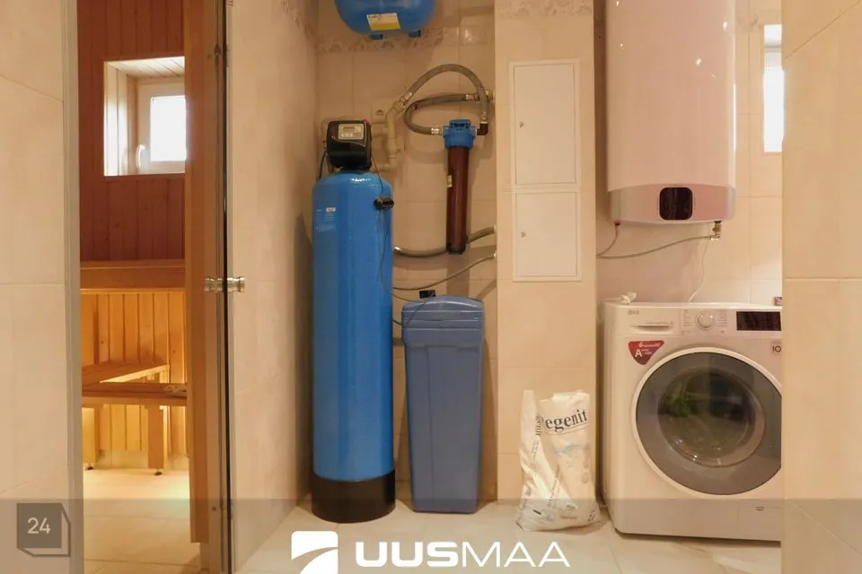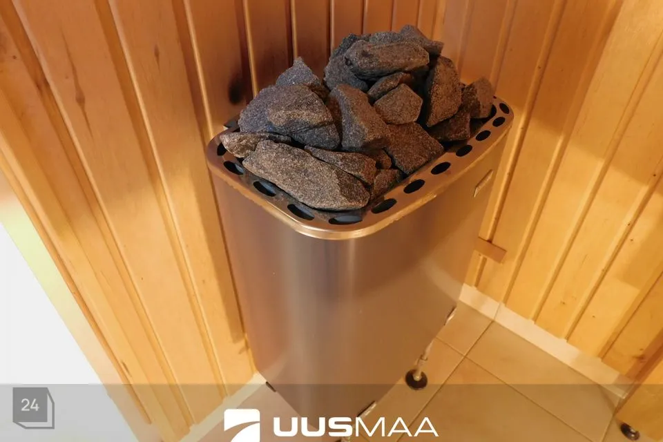 Küttesüsteem - telliskiviahjud mõlemas majas ning elektriline põrandaküte elumaja elutoas, saunaruumides ja duširuumides-wc-des; leiliruumis elektrikeris.