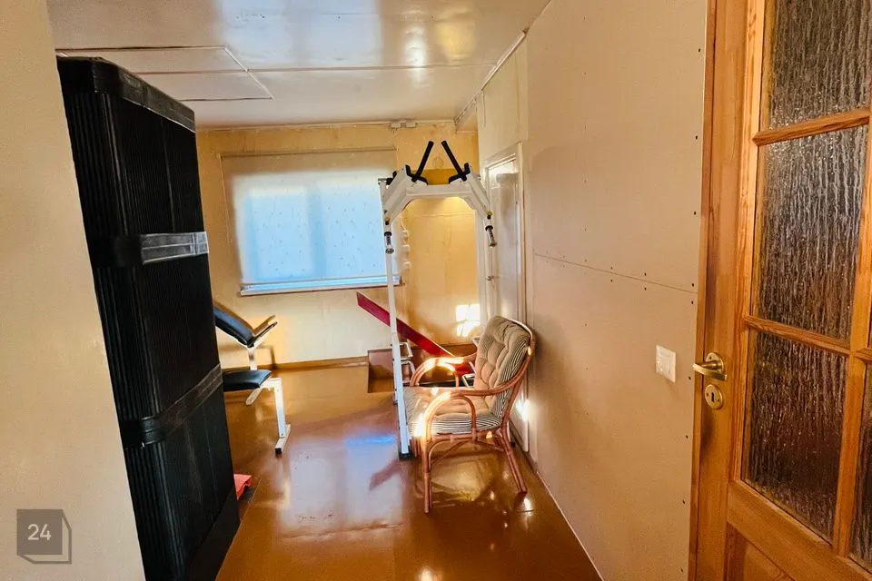 Kõrvalhoones on garaaž, saunaruumid ja kuur. Saunast on vana sisustus välja võetud.Hetkel ruum tühi, aga võimalus uuesti saunana kasutada kui uus sisustus sisse panna.