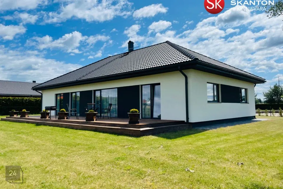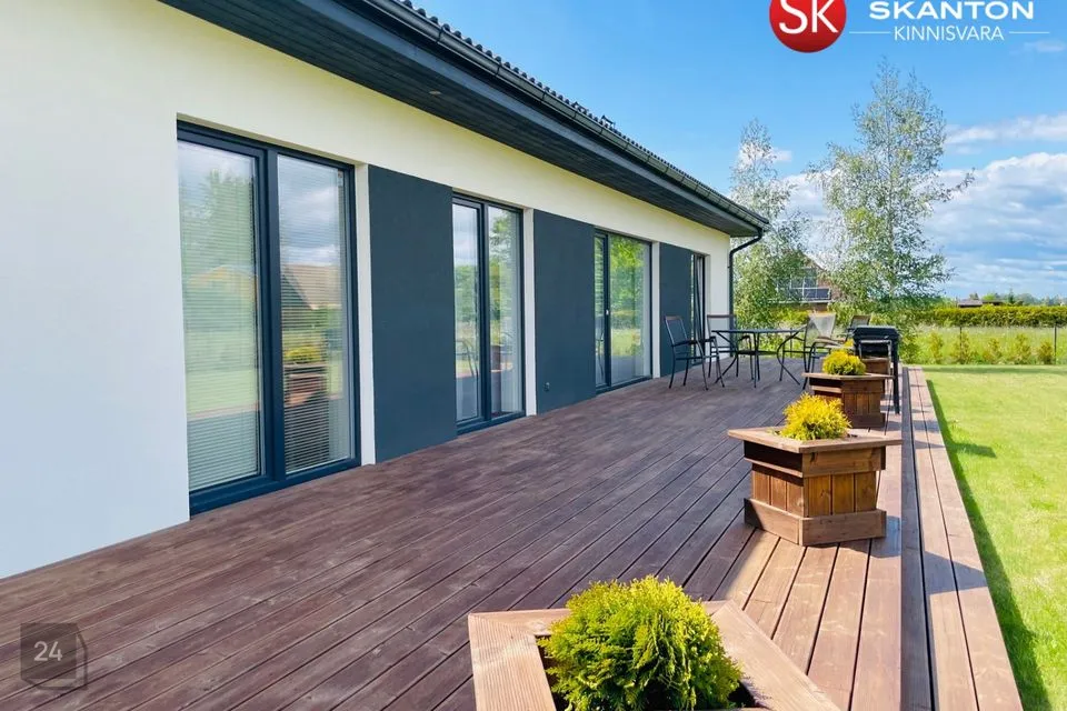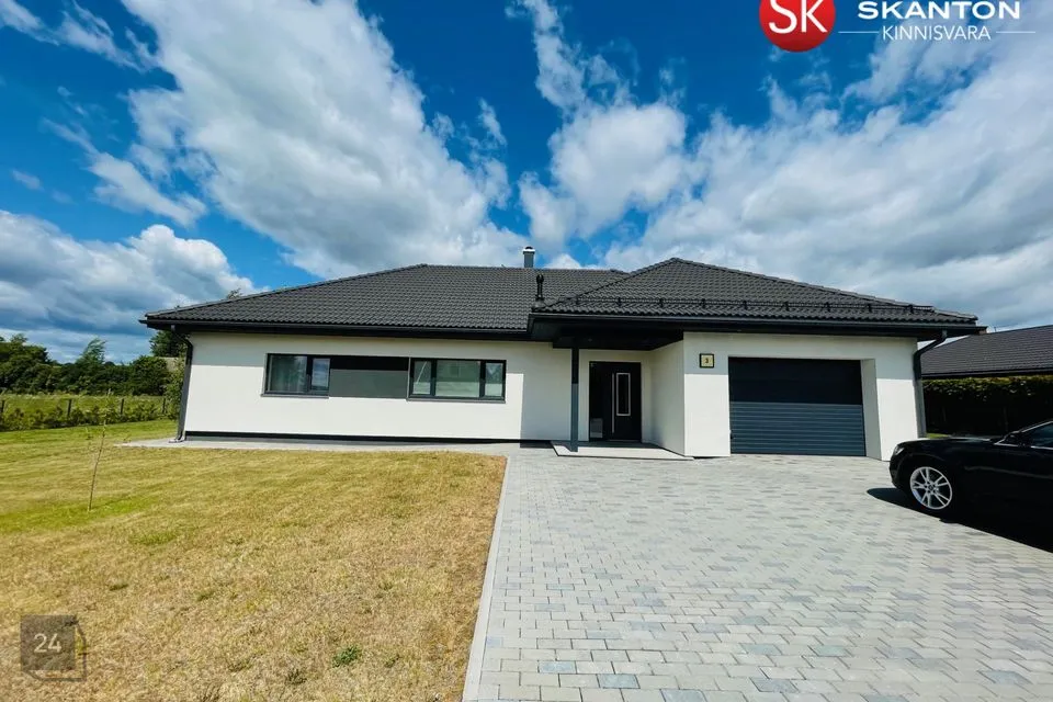 Lisaks garaaž (24,2m2) ning tehnoruum (2,3m2). Elutoast, kahest magamistoast ja sauna puhkeruumist pääseb maja taga asuvale 68,2m2 suurusele terrassile.