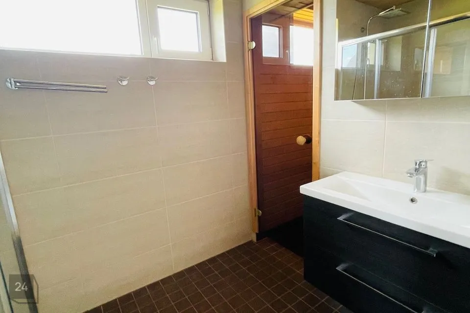 Sauna eesruum (14,9m2), pesuruum (4,9m2), saun (3m2), WC (1,8m2).