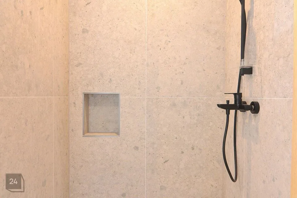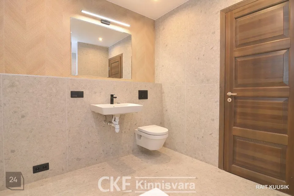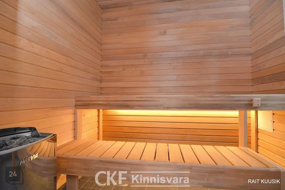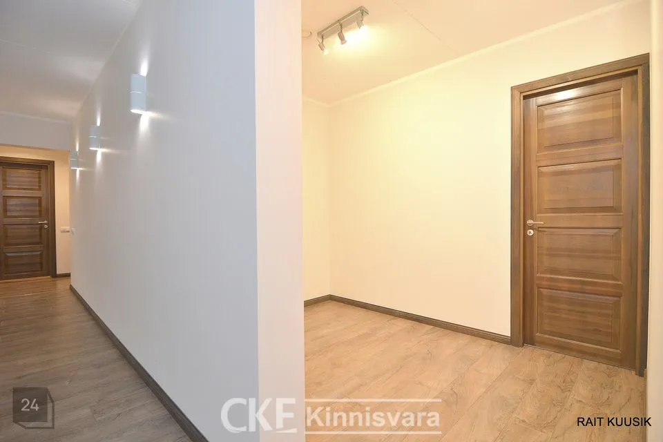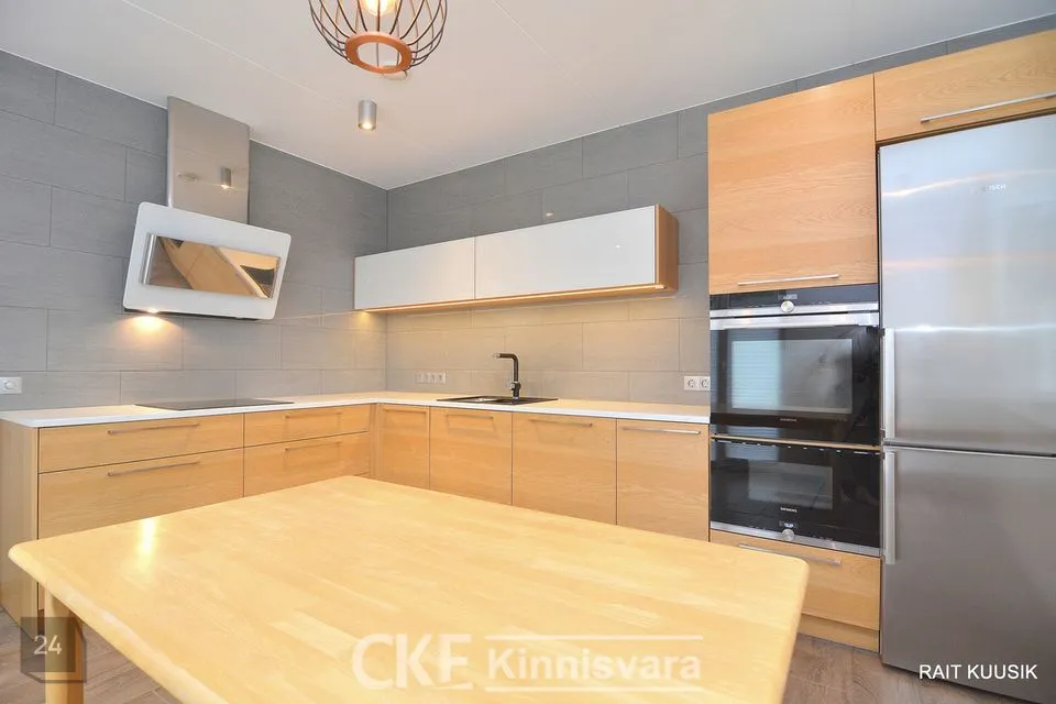 Integreeritud tehnikaga köögimööbel. Köögimööbli tehnika hulka kuuluvad: nõudepesumasin; õhupuhasti; mikrolaineahi; küpsetusahi ja induktsioonpliit. Lisaks töötasapinna valgustus ja eraldi seisev külmkapp. Köögi ja tubade põrandatel Balterio laminaatparkett. Esiku ja san.ruumide põrandad plaaditud.