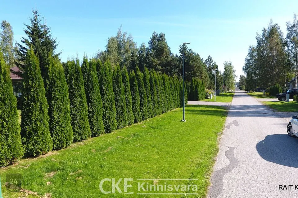Kõrghaljastusega kinnistu on piiratud aiaga. Tänavapoolsel küljel kasvab kõrge elupuuhekk. Maja taga kasvavad erinevad viljapuud- ja põõsad. Lisaks erinevad leht-ja okaspuud. Majaäärne kõnnitee ja parkimisala kaetud kiviparketiga.