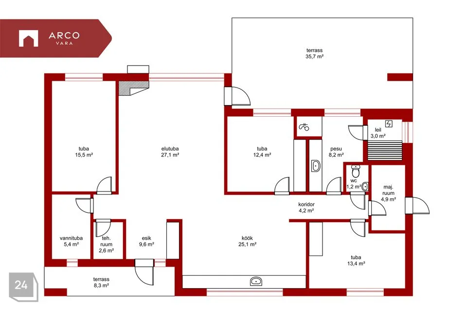 2 vannituba ja WC-d
