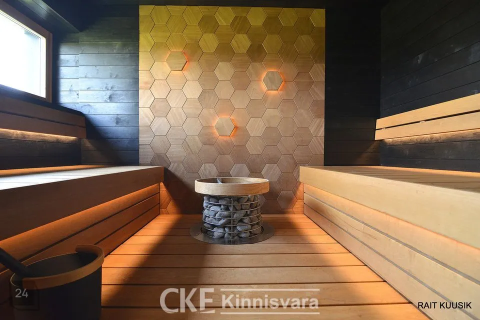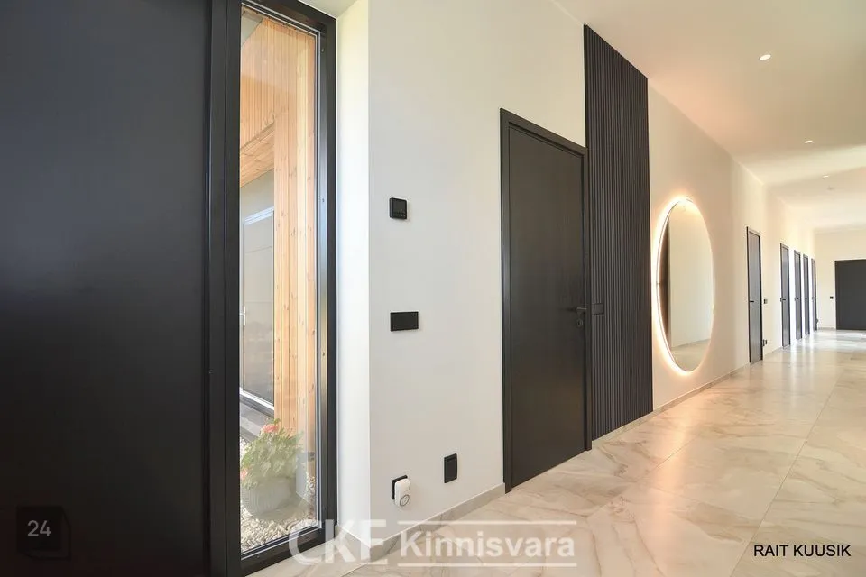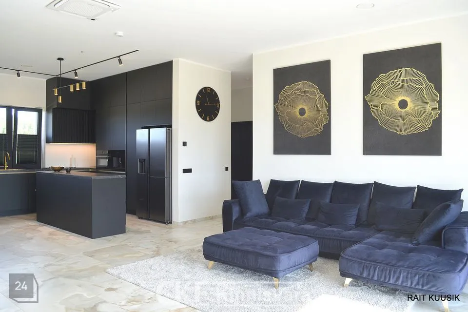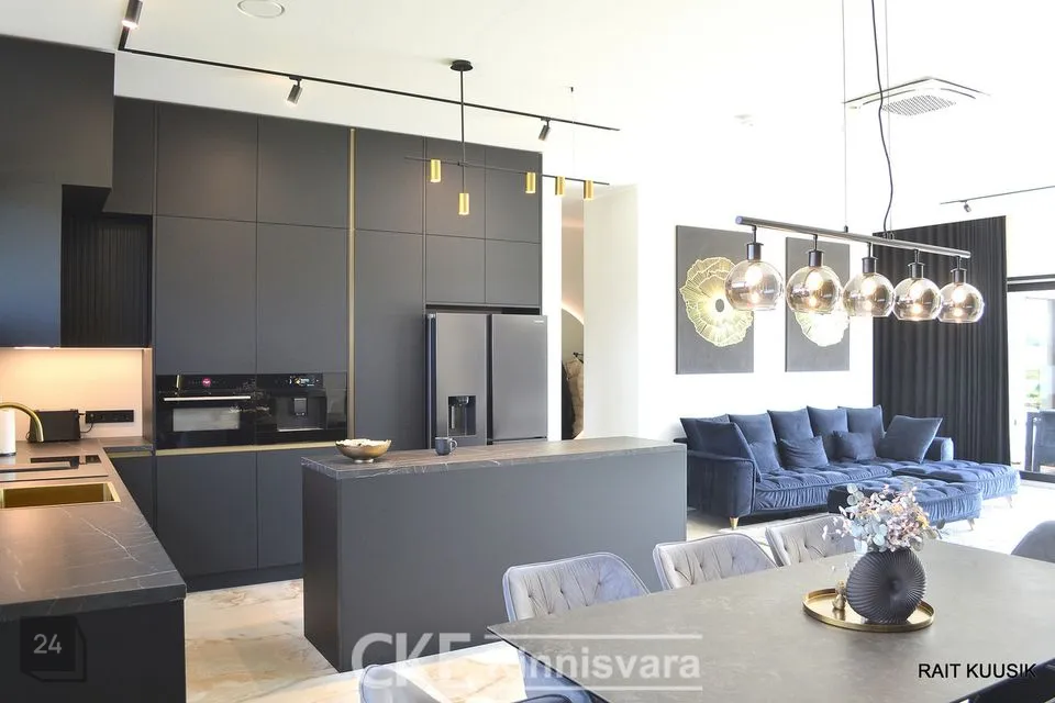 Täislahendusega köögimööbel koos tehnikaga. Majal on sisene ja väline LED lampidel energiasäästlik valguslahendus. Ruumides lae-ja seinavalgustid. Tubade põrandatel naturaalne kalasaba puitparkett. San.ruumides kvaliteetne san.tehnika.