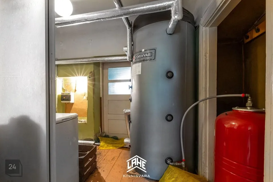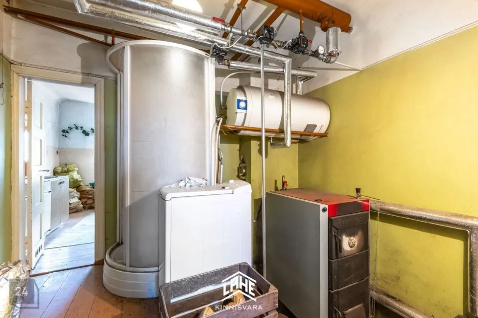Põhihoones on radiaatorküttel põhinev keskküttesüsteem. Olemas ka puuküttel pliit ja ahi.