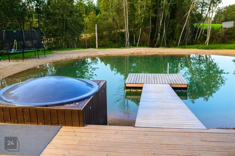 Lisaks asuvad kinnistul ujumissillaga tiik ja purskkaev. Tiik on vee puhtuse tagamiseks läbivooluga puurkaevust ja suubub ojja. Tiik on asustatud kaladega pakslaup, kes on tuntud vetikate sööja. Pakslauba kirev välimus lisab tiigile visuaalset atraktiivsust ning toidubaas aitab tasakaalustada veekvaliteeti. Samuti on tiigis amuurid, kes taimestiku ohjamiseks tiigis, ei vaja toidulisa. Tiigi ja saunamaja vahel asub kosutavaks kasutamiseks kümblustünn.