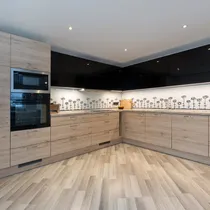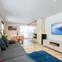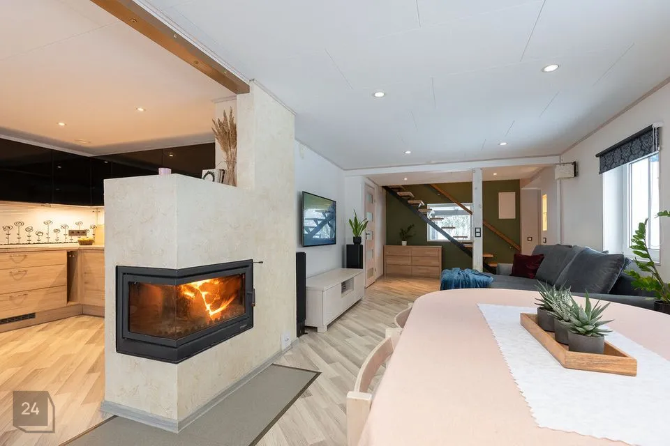 Köögi ja elutoa vahel on maja südameks kaunis salvestav kamin-ahi. Köögimööbel ( Arens) koos kvaliteetse tehnikaga. Köögist pääseb avarale puitpõrandaga terrassile 29m², kus saab nautida perega mõnusat olemist ja kaunist vaadet sisehoovi. Terrass möbleeritud koos väliköögiga.