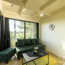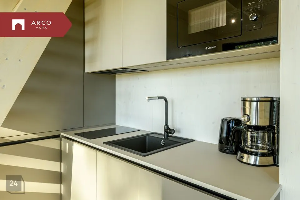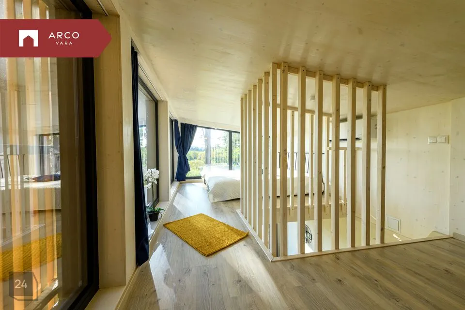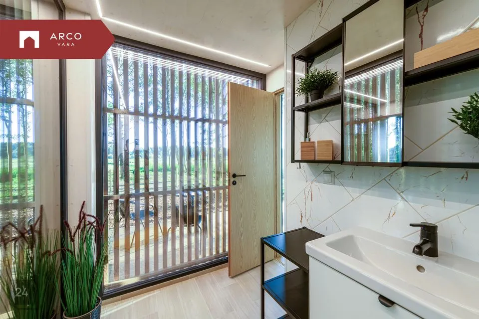 Siin on avar magamistuba, hubane elutuba, funktsionaalne köök ja kaasaegne vannituba ning vahekorrus lisamagamiskohtade jaoks (kahekorruselisel variandil)