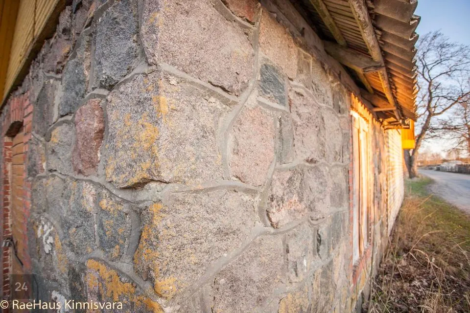 Hoone on omanäoline, osaliselt puidust ja maakivist konstruktsiooniga.