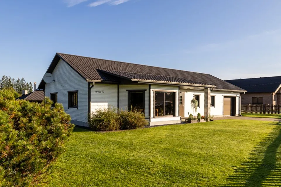 Maja kandekonstruktsioon on fibost ning välisviimistlusel on kasutatud puitlaudist.