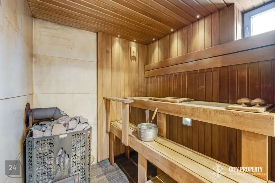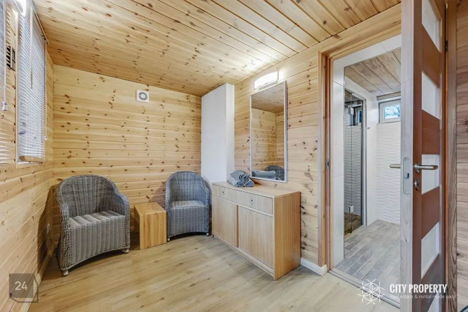 Muidugi ei puudu ka üks traditsiooniline puuküttega saun, millel on omakorda väike eessruum kus hea pärast sauna lõõgastuda. Saunast on võimalik liikuda maja taha hubasele ja privaatsele terrassile.