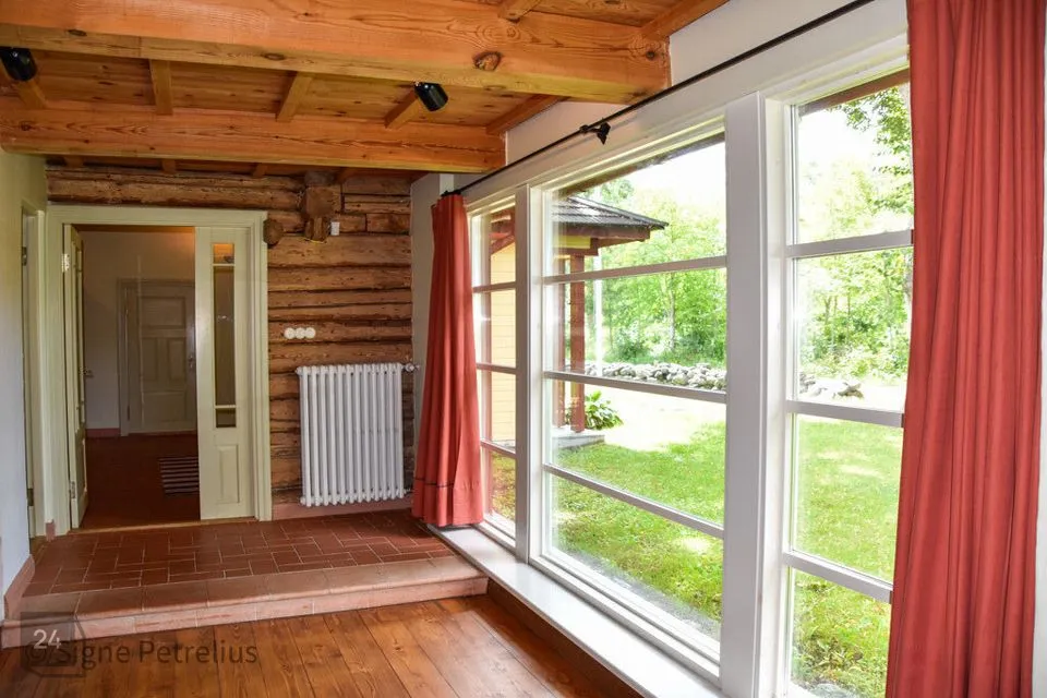 Aknad puitraamidel 2-kordsed klaaspakett aknad, puidust sise- ja välisuksed.