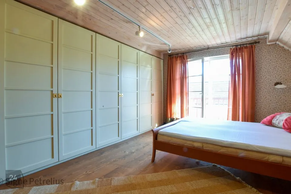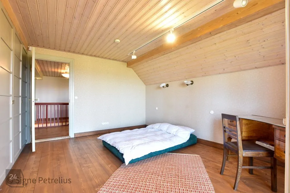 Kvaliteetsed laudpõrandad, keraamilised põranda plaadid köögi ja söögitoa osas ning esikusse ja magamistubadesse sisse ehitatud riidekapid annavad majale ühtlase rahuliku stiili ja otstarbeka kasutuse.