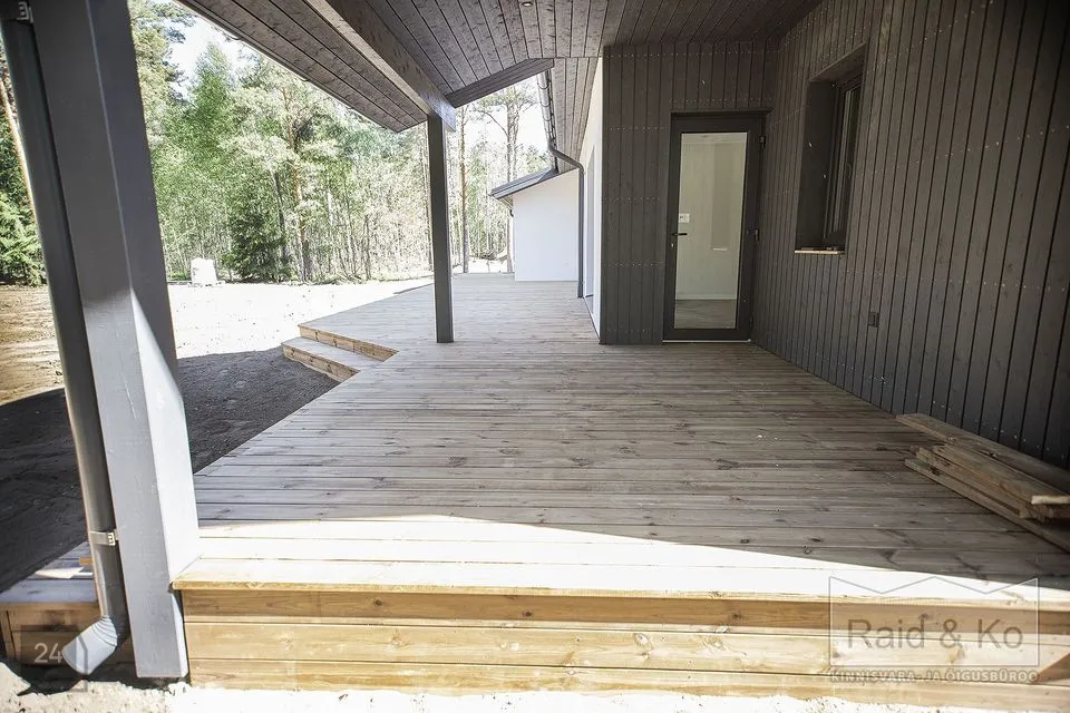 Avarast köök-elutoast pääseb kinnistu hoovipoolsele, päikeselisele verandale, mis katab kogu maja hoovipoolset külge.