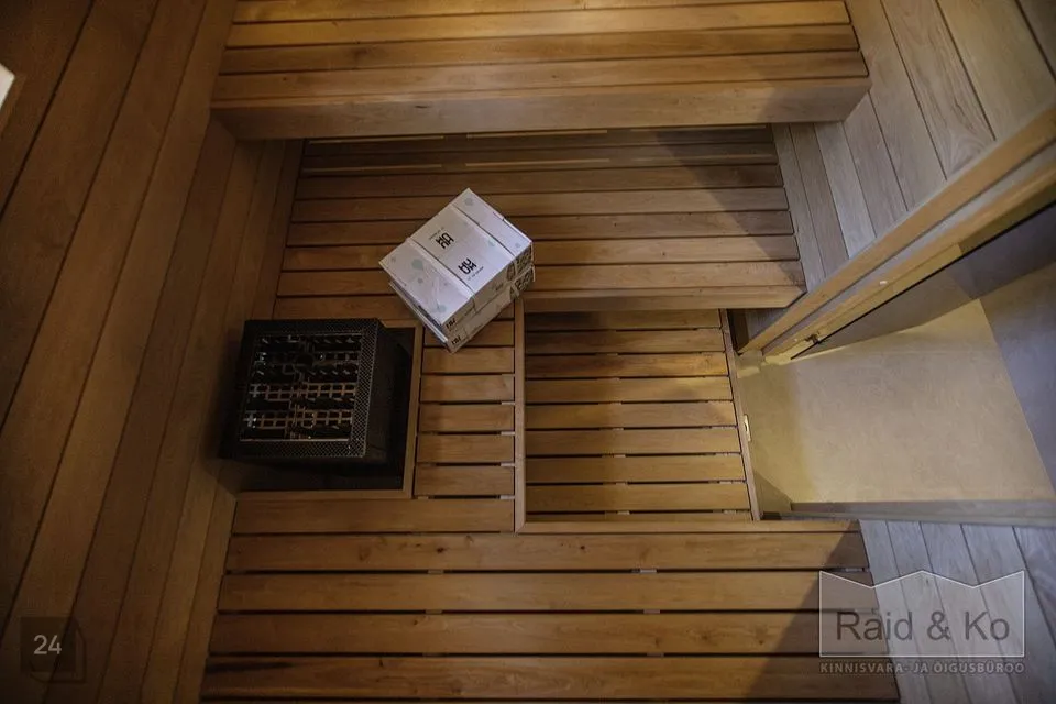 Eraldi tiivas olev saunakompleks on mõeldud mõnusa puhkepaigana: õhurikas leiliruum, dušinurk ning päikeseline puhkeruum. Puhkeruumis on seatud vee-ja kanalisatsiooni valmidus, siia saab teha eraldi väikese köögiosa. Märkimata ei saa jätta ka aknaid, mis avanevad kogu ulatuses - nii jõuab suveõhtu värskus otse sauna eesruumi.