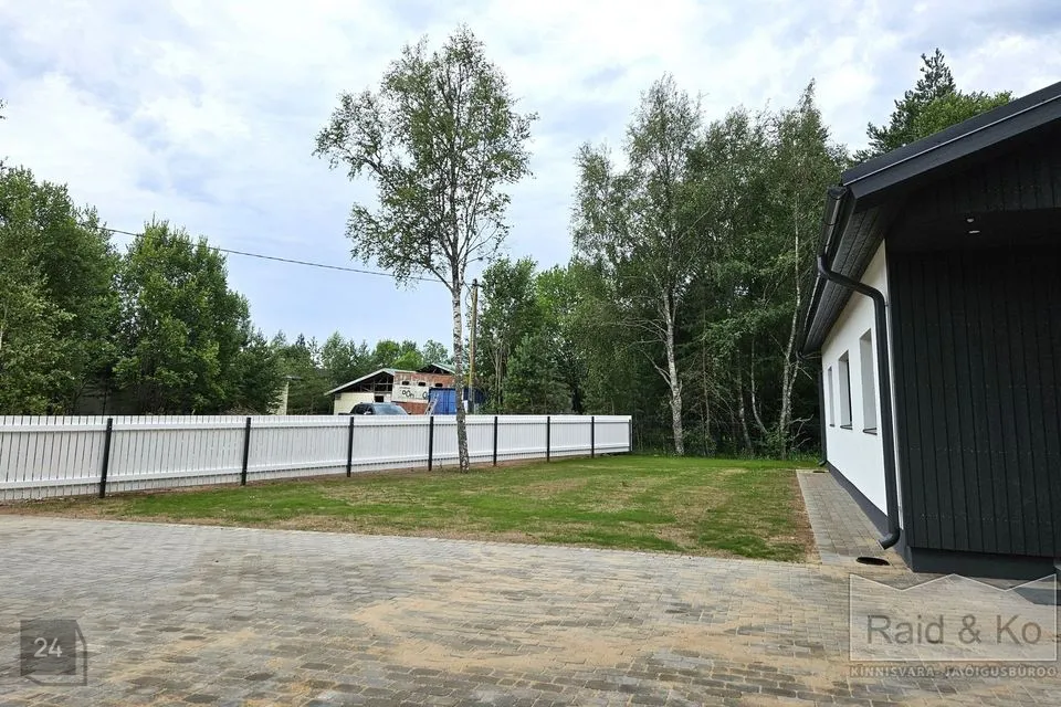 Kinnistut ümbritseb keevispaneelaed, maja ees kaunis valge lippaed. Väravad puldiga avatavad, avaral kiviparketil on ruumi parkimiseks.