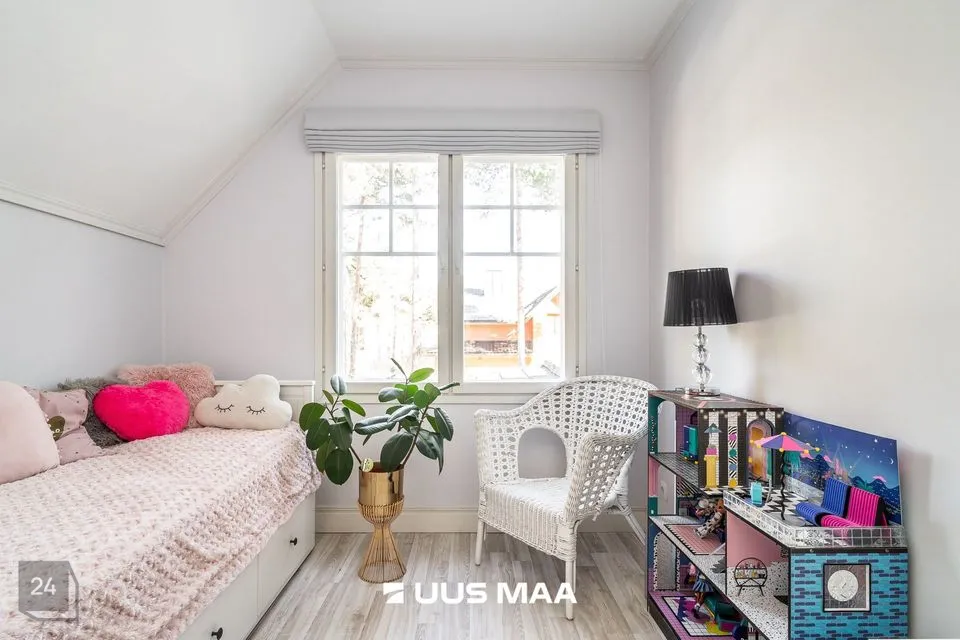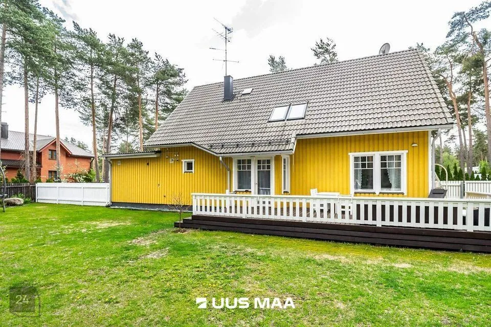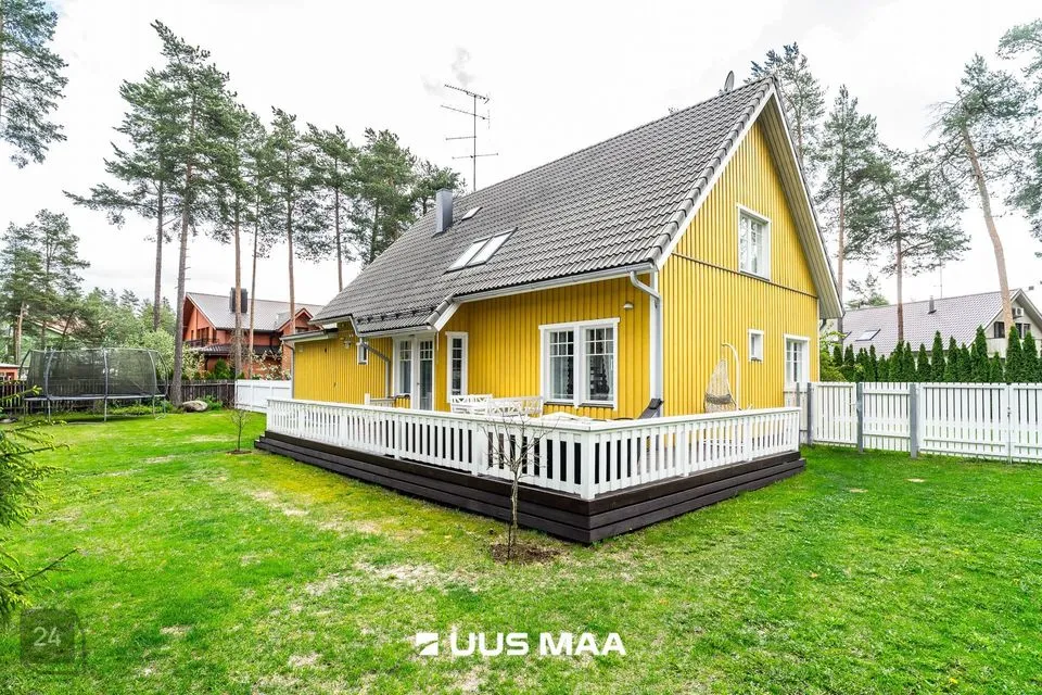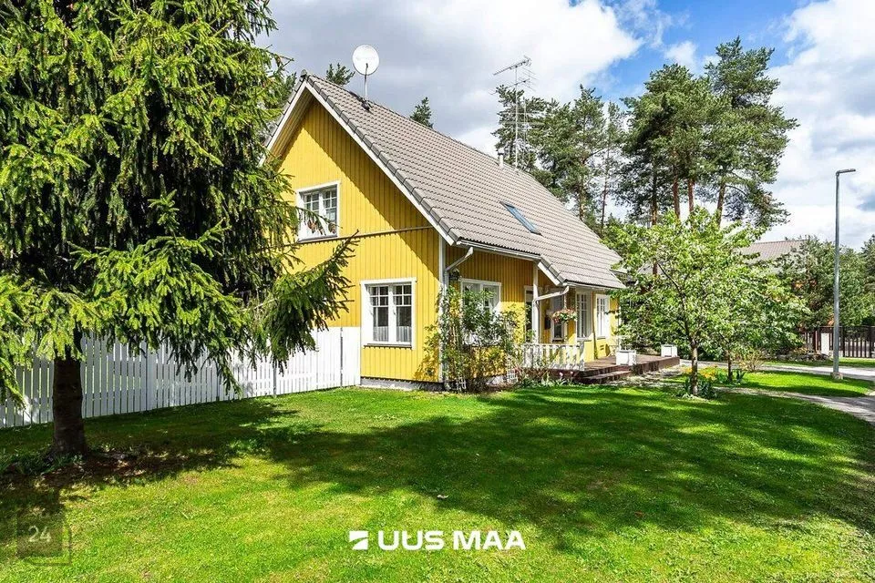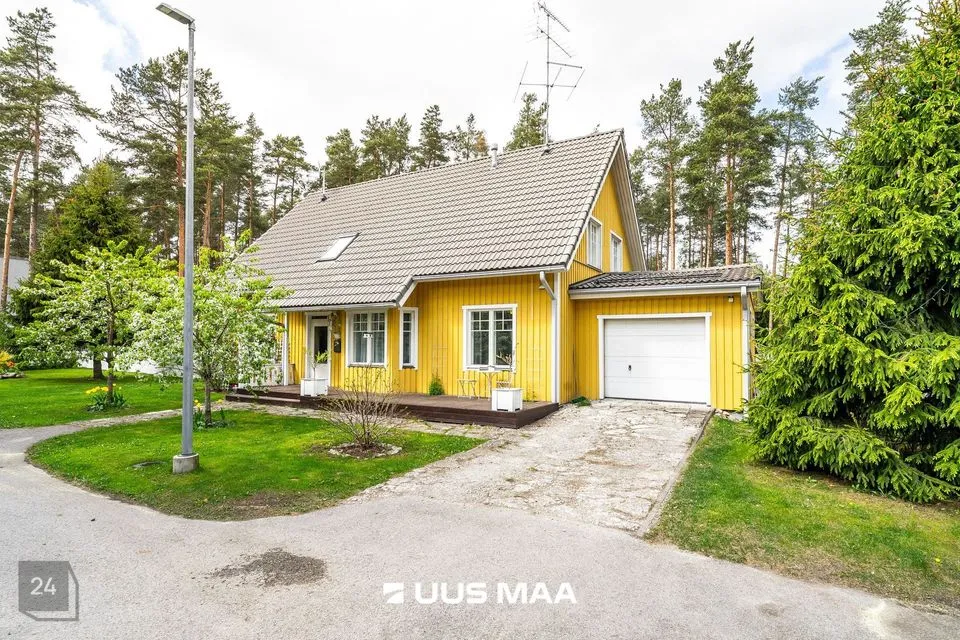 Kinnistul on kahekorruseline viilkatusega tibukollane Bullerbylik eramu. Eramu esimese korrusel on elutuba-söögituba-avatud köök (kogupinnaga 49 m2), kontorituba-mängutuba (8,2 m2), sisseastutav garderoob, külalistualettruum, esik, trepihall, majapidamisruum-tualettruum-duširuum, leiliruum ning garaaž (24 m2) ja tehnoruum. Teisel korrusel on kolm magamistuba (vastavalt 17,1 m2, 12,7 m2 ja 12,4 m2), trepihall ning duširuum-tualettruum, kuhu soovi korral saab pere pisemate rõõmuks paigaldada ka vanni. Eramu planeering on läbimõeldud ja funktsionaalne ning sobilik ka mitmelapselisele perele. Peamine magamistuba asub lastetubadest teises majatiivas ja on otsepääsuga sanruumi. Pesemisvõimalus maja mõlemal korrusel hoiab ära suure pere hommikuprotseduuride järjekorrad Maja planeeringus on arvesse võetud päikese liikumist ning seeläbi maksimaalselt ära kasutatud loomulikku valgust. Maja siseviimistlust värskendati kaks aastat tagasi. Maja müüakse koos kohtkindla sisustusega, muu sisutuse osas võimalikud erikokkulepped.