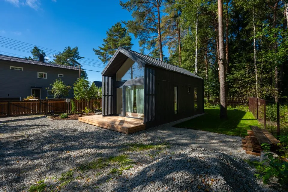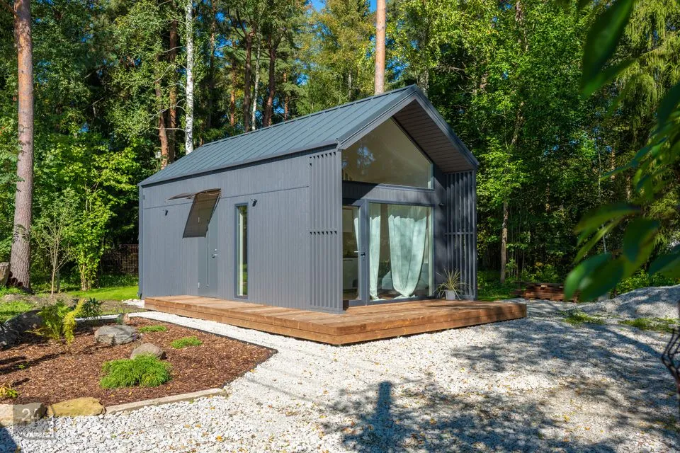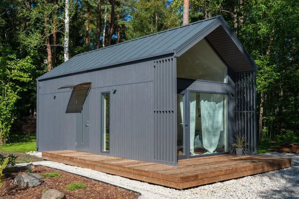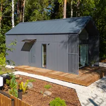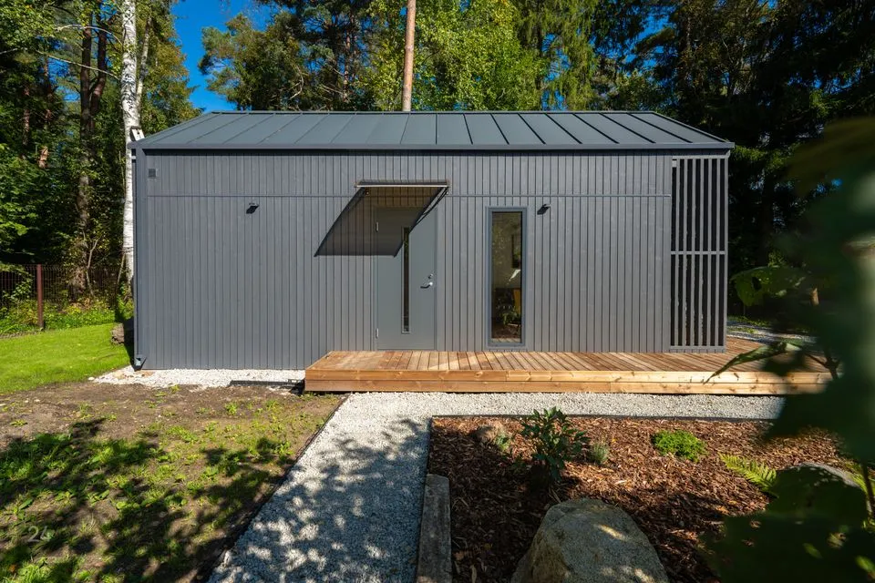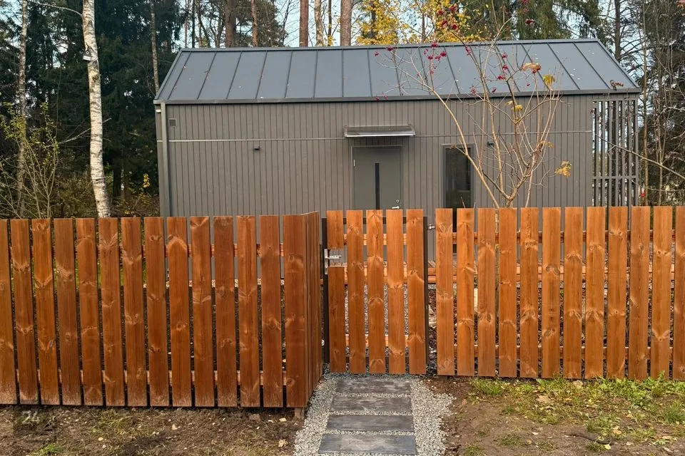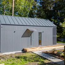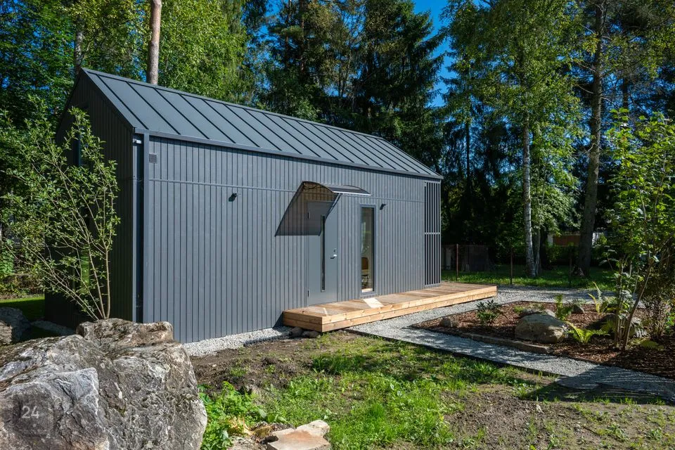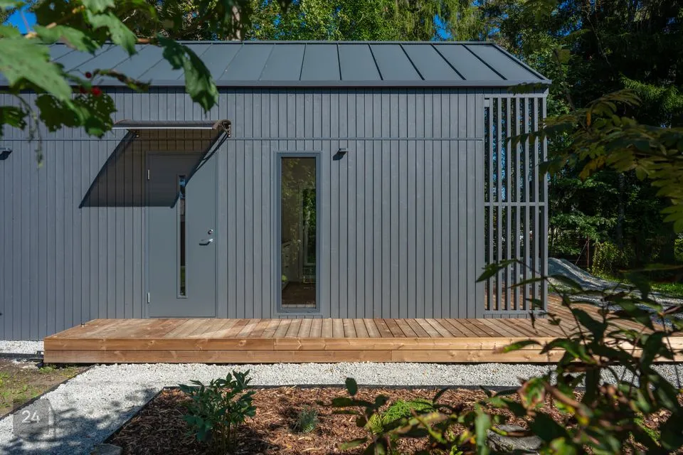 Fassaad: kahekordselt värvitud laudis toonis RR23 (antratsiithall)