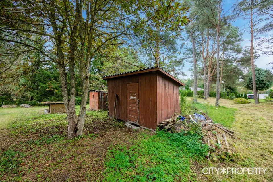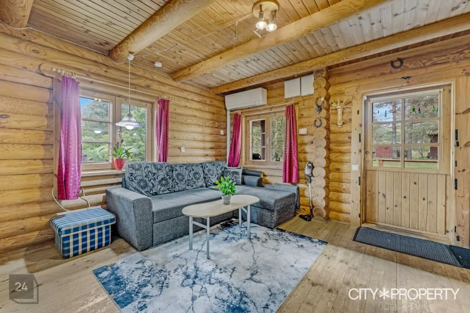 Müüa looduskaunis ja privaatne kinnistu koos palkmajaga. Kahekorruseline saunamaja (elamispind 44,3 m²) on heas seisukorras ning võimaldab aastaringset elamist. Hoones on toimiv saun, terrass, elutuba, köök, magamistuba ja panipaigad. Krunt on kõrghaljastusega ning sellel asub ka väike tiik, mille soovi korral võib ära täita. Lisaks pakub kinnistu võimalust ehitada juurde suurem elumaja. Olemasolev hoone annab elamise võimaluse ehituse ajaks. Uue hoone ehitamisega jääb olemasolev saunamaja abihoonena krundile.