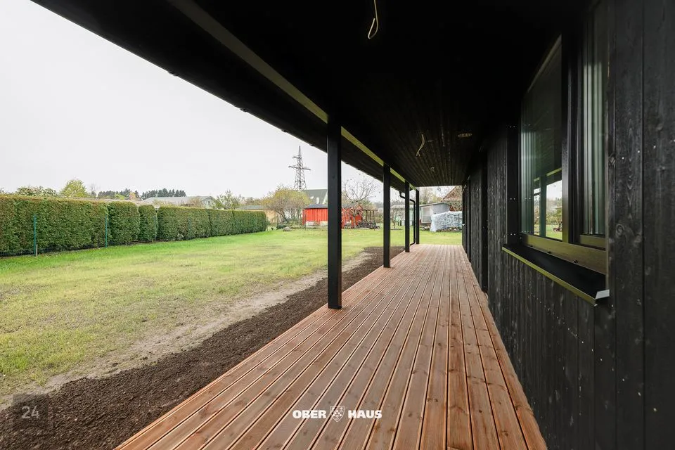 Kaasaegne ja energiatõhus Timber Element puitkarkassmaja on ehitusaluse pinnaga 154,3 m², köetav üldpind 106,2 m², millele lisandub 27,7 m² suurune katusega terrass – suurepärane koht hommikukohviks või suviseks lõõgastuseks.