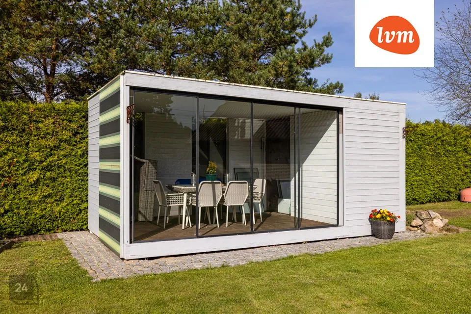 Aiamaja juurde kuulub panipaik, kus saab hoida aiatööriistu.