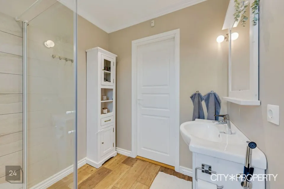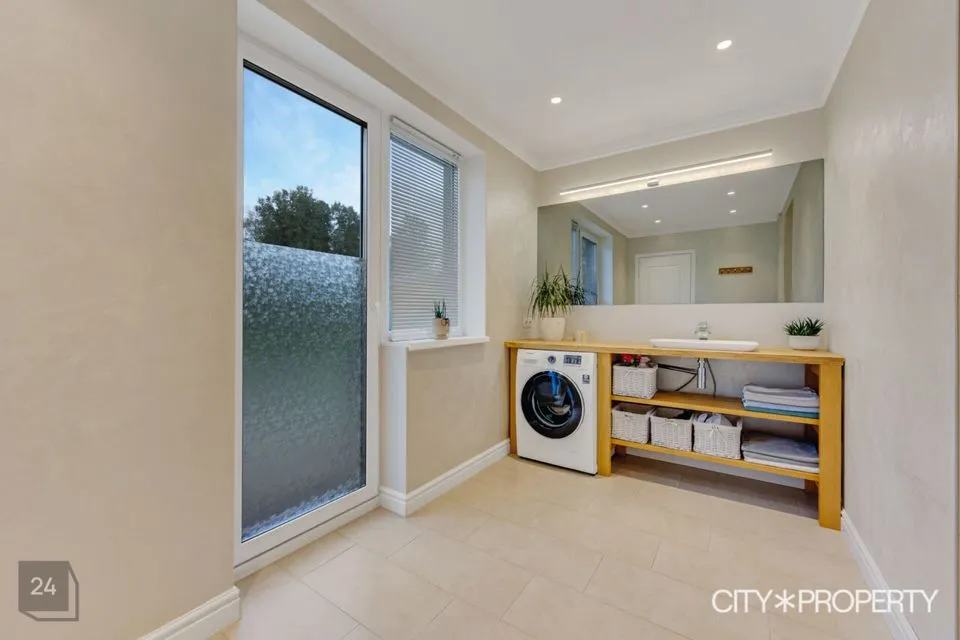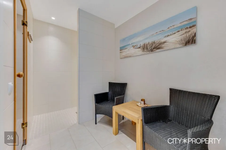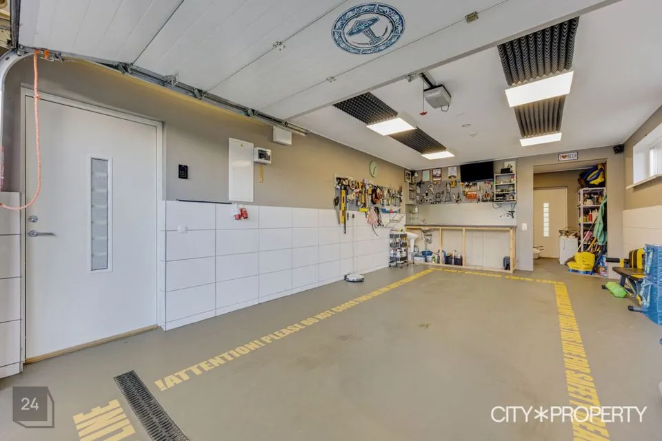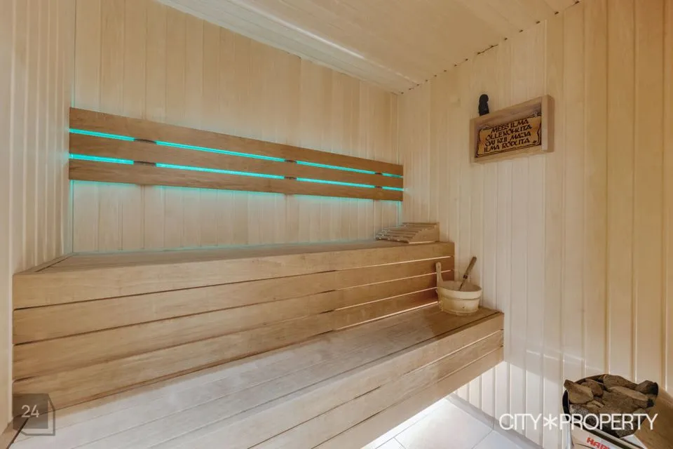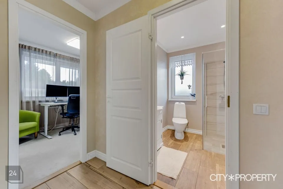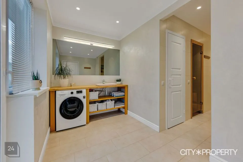 Majas on kaks WC-d ja kaks dušširuumi, samuti avar pesuköök ning saun koos eesruumiga, kust pääseb otse majatagusele terrassile. Katusealuse terrassi kaudu on ligipääs suurde garaaži (registreeritud töötoana) ja panipaika, kus paikneb maja küttesüsteem ning automaatloputusega pissuaar.