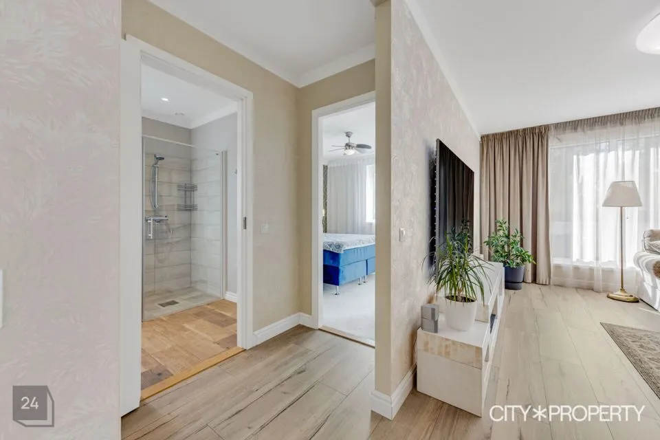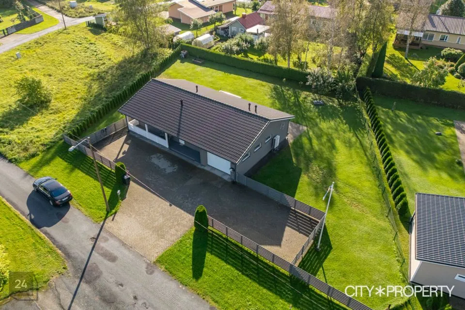 Maja on varustatud vesipõrandakütte süsteemiga, mis tagab ühtlase ja mugava soojuse.