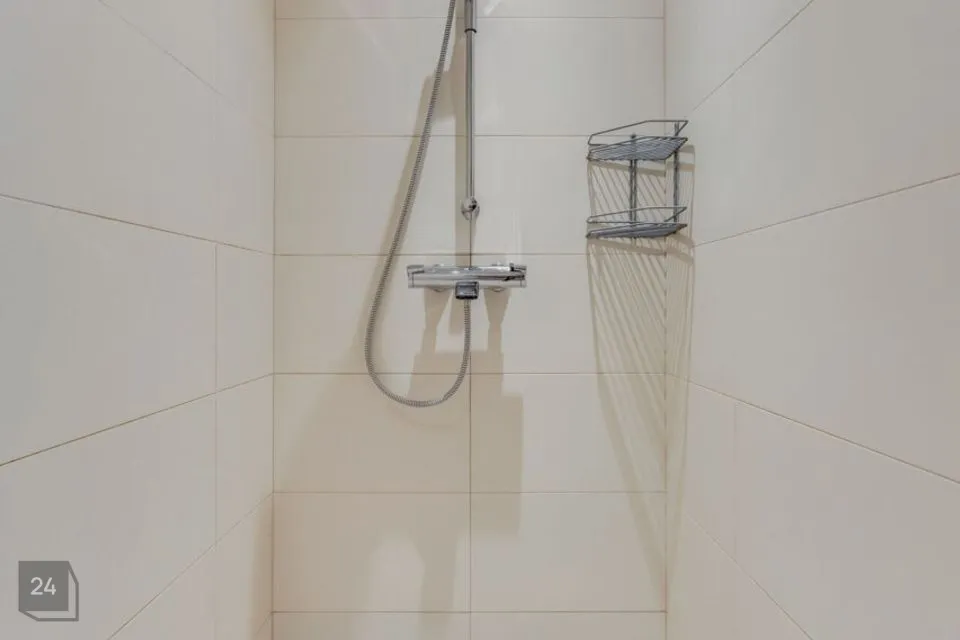 Pesuruumide, esiku ja WC põrandad ning dušširuumi seinad on kaetud keraamilise plaadiga.