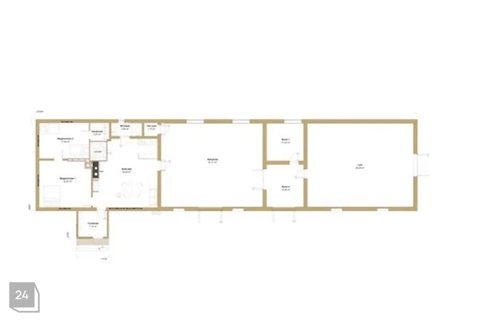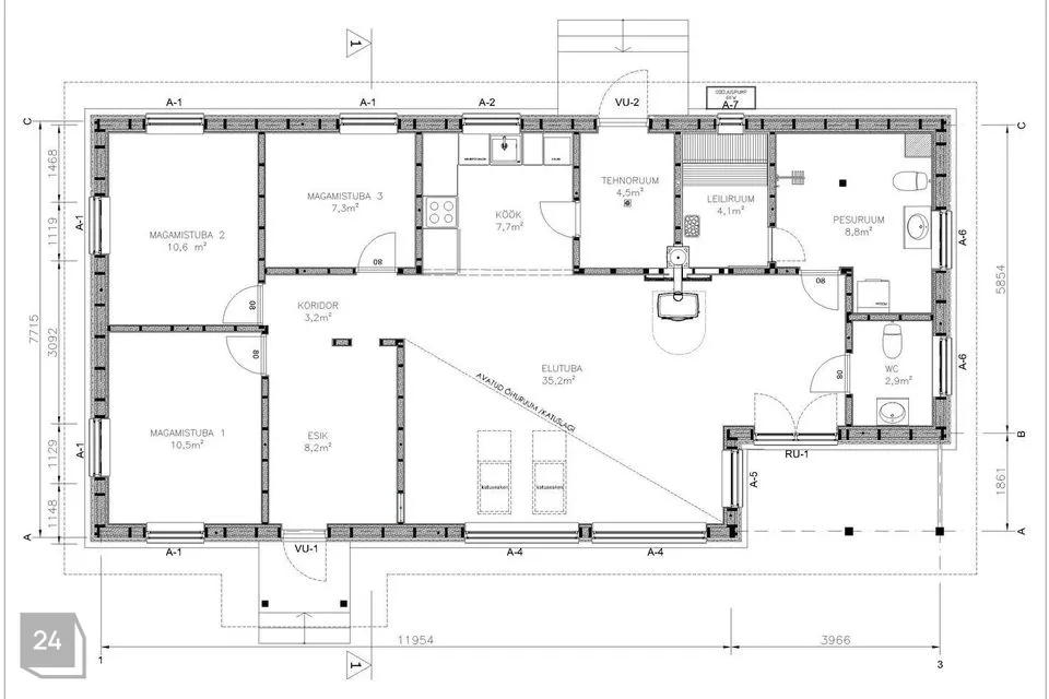 Majja sisenedes on suur avar esik, 3 magamistuba, valgusküllane elutuba-köök kust pääseb terassile, eraldi wc, eksklusiivne termopuidust saun Saunumi kerisega ja duširuum koos wc-ga ning tehnoruum väljapääsuga õue.