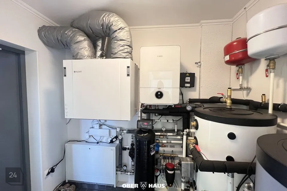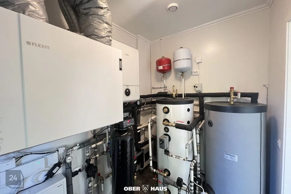 Maja kütteallikaks on õhk-vesi soojuspump põrandaküttega kõikkides ruumides ja värske õhu tagab soojustagastusega ventilatsioon.
