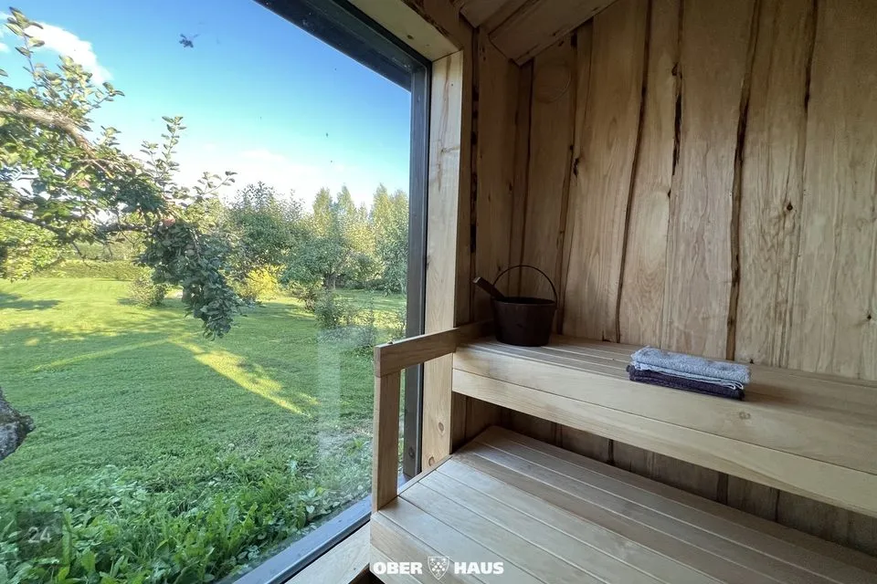 Talumaja kõrval on eraldi seisev uus saunamaja.