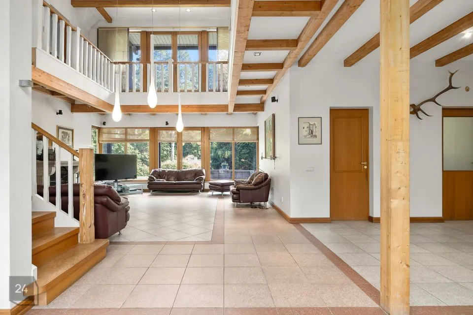 Peahoone on väärikas kahekorruseline kivimaja, mille üldpind on umbes 360 m². Selle südameks on avar ja valgusküllane elutuba, mis avaneb läbi kahe korruse. Suured, peaaegu põrandast laeni aknad toovad ruumi rohkelt valgust ning loovad hea kontakti maja ümbritseva loodusega. Köök ja söögituba on kujundatud nii, et seal on piisavalt ruumi nii pere igapäevasteks toimetusteks kui ka suuremateks seltskonnaõhtuteks. Lisaks leiab esimeselt korruselt kabineti, treeningsaali, saunaosa aurusauna ja mullivanniga ning majapidamisruumid. Saunast pääseb otse õue, kus ootab Bassein (vajab korrastamist).
