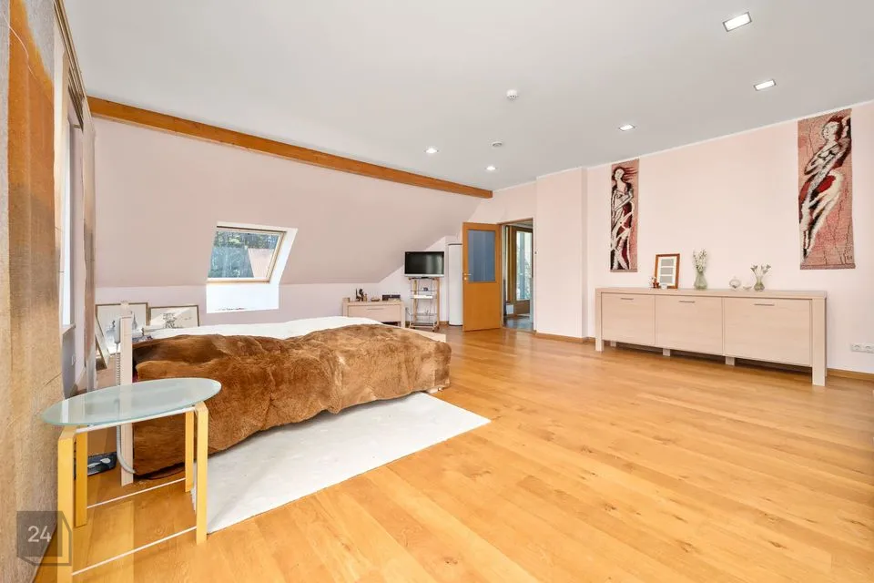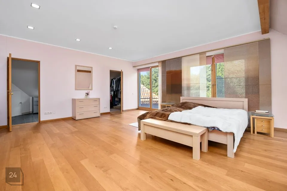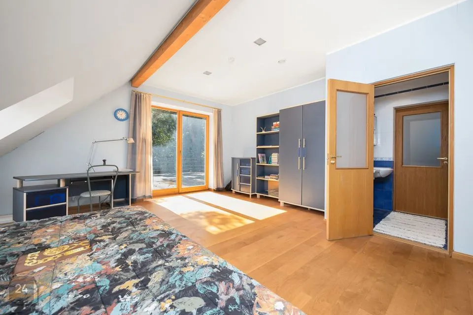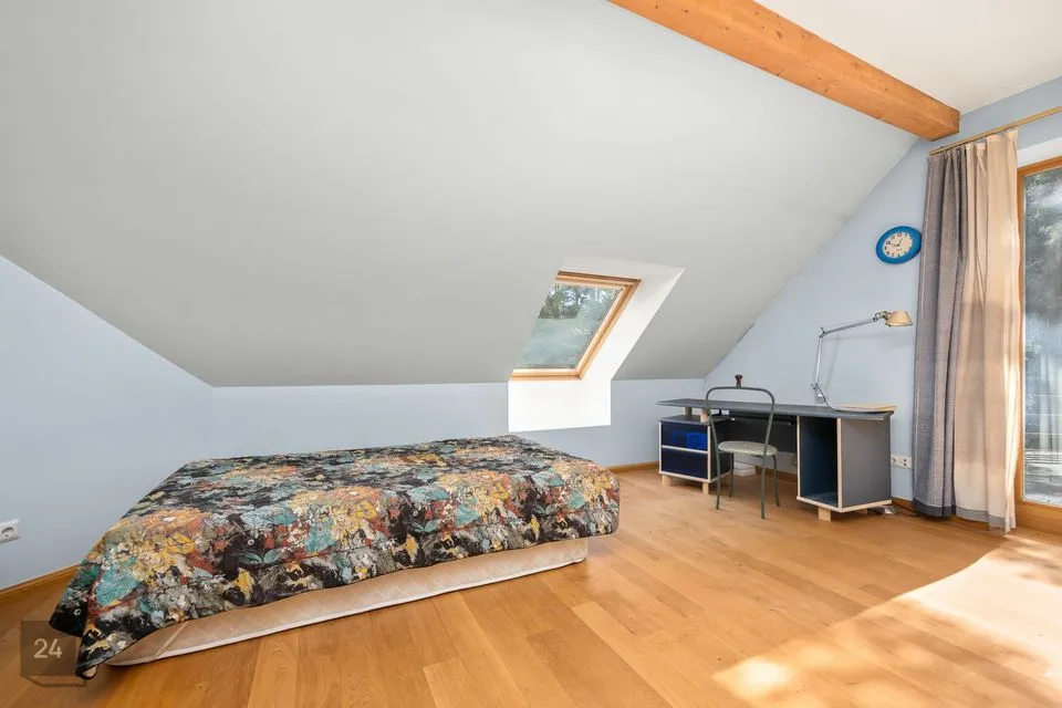 Ülemisel korrusel asub kolm mugavat magamistuba, millest ühel on oma privaatne duširuum ja wc; teisel kahel on omavahel jagatud duširuum ja wc. Tubadest pääseb avaratele rõdudele, mis avanevad mõlemale poole maja ja pakuvad kauneid vaateid ümbritsevale loodusele.