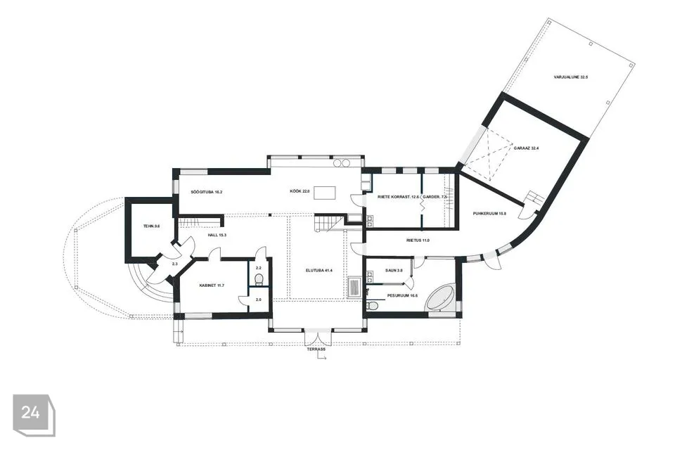 Elamu juurde kuulub soe garaaž ja eraldi varjualune veel mitmele sõidukile.