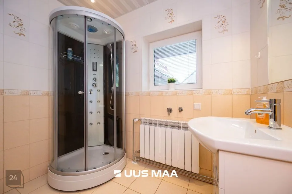 Maja suletud netopind on kokku 426.7 m2, millest köetavat pinda 342.8 m2. Maja kütteallikas on uus ja kvaliteetne BOSCH õhk-vesi soojuspump, mis on lahendatud vesipõrandakütte baasil kõikidel korrustel. Küte on ruumipõhiselt reguleeritav.