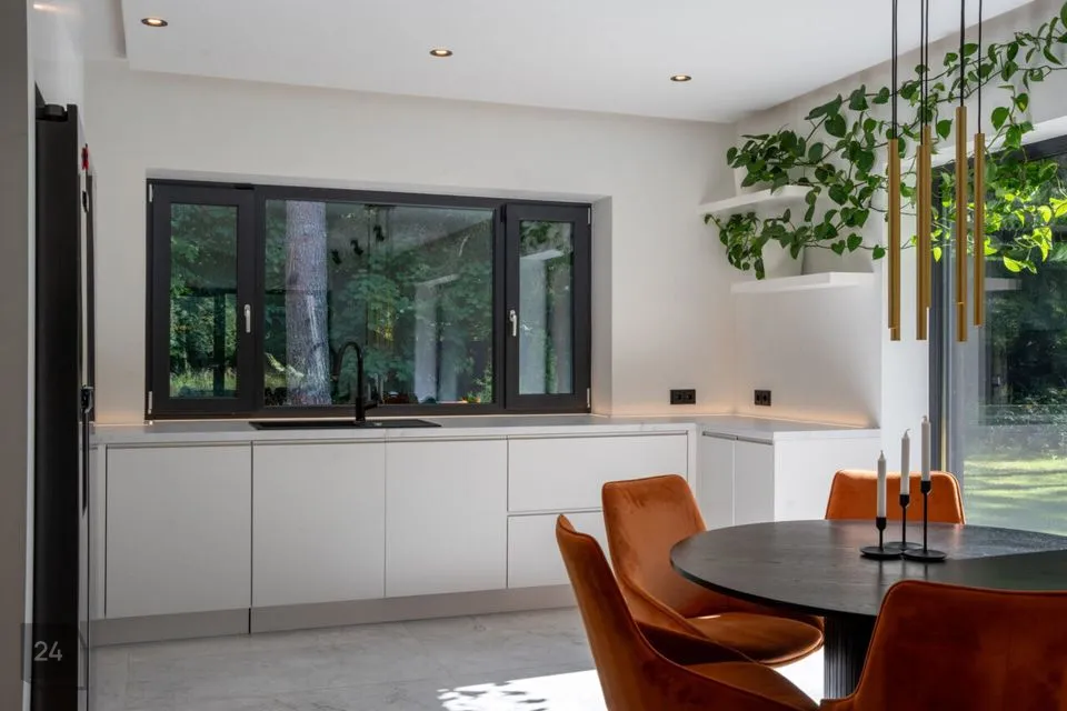 Kitchen: modern layout, built-in appliances, water filtration system, dining table for 6