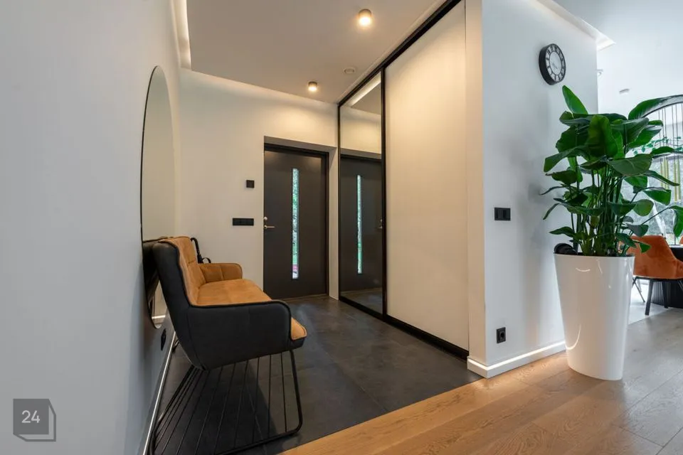 Entrance Hall: built-in mirrored closet, bench, large mirror