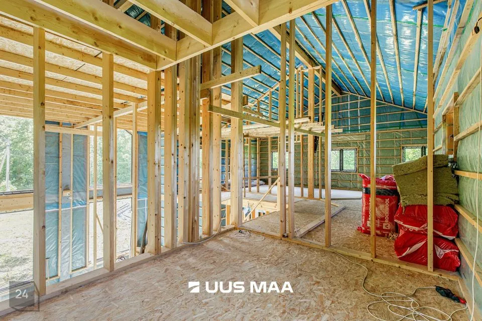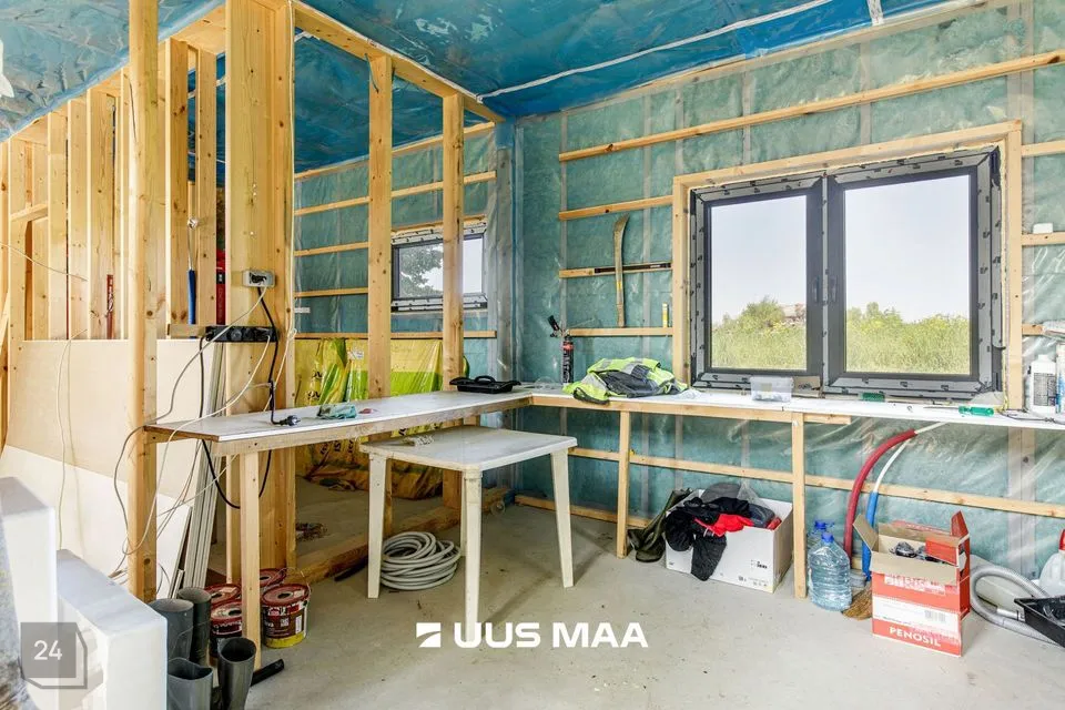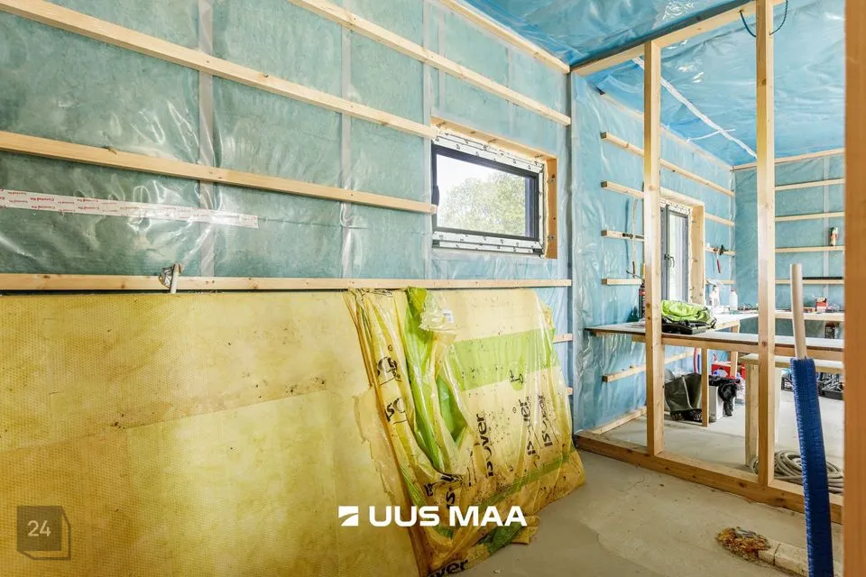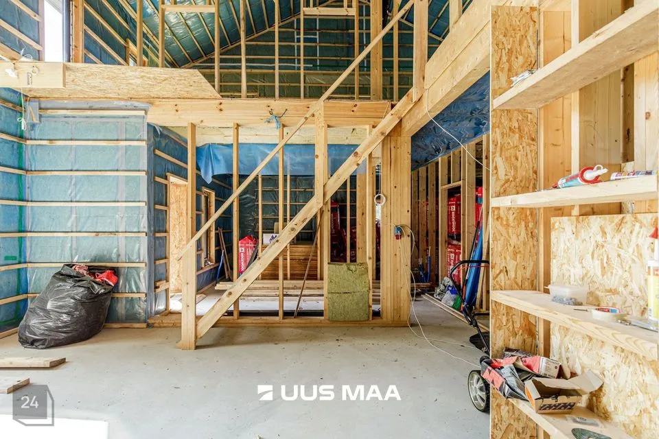 Otsid rahulikku ja ruumikat kohta, kus ise oma kodu viimse detailini valmis ehitada? Müüki on tulnud suure krundiga (7478 m²) kinnistu, millel asub uusehitus – kaasaegse projektiga kahe korrusega üksikelamu, mille karkass ja põhikonstruktsioonid on valmis, ent viimistlus ja tehnosüsteemid ootavad lõpetamist.
