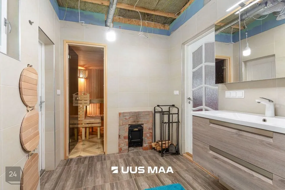 Kinnistul paikneb 35,1 m2 suletud netopinnaga freespuit saunamaja. Ehitusega on alustatud kolm aastat tagasi, hoone on rajatud lintvundamendile, katusekatteks plekk. Hoones on avatud kööginurgaga tuba, pesuruum, leiliruum ning eraldi sissepääsuga tehnoruum. Veevarustus kinnistul paiknevast puurkaevust, sooja vett toodab elektriboiler, toa kütab soojaks kamin. Kanalisatsioon lahendatud kinnise mahuti abil. Seinad soojustatud 100 mm kivivillaga, põranda all liiv, 100 mm peno mida katab OSB plaat. Seintel tugevduseks OSB plaat, toa seinad on kaetud tapeediga, vannituba plaaditud. Tänu soojustusele on sauna mugav kasutada ka talveperioodil. Teine uus hoone kinnistul on 64,1 m2 suletud netopinnaga abihoone. Hoonete kasutusload puuduvad.