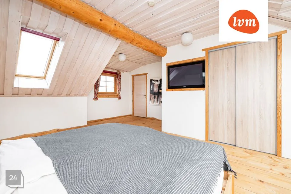 Palkmaja ise on ehitatud 2009. aastal ning hõlmab endas 272 m² elamispinda, mis jaguneb avarateks tubadeks, mille hulgas neli magamistuba, suur elutuba, köök, majandusköök, 2 vannituba ja 2 tualetti, saun, panipaik, katlaruum ning liugustega garderoobikapid. Mööbel ei ole hinnas.