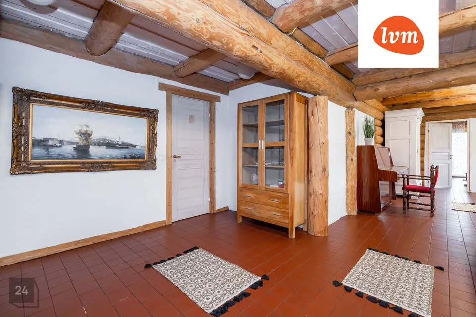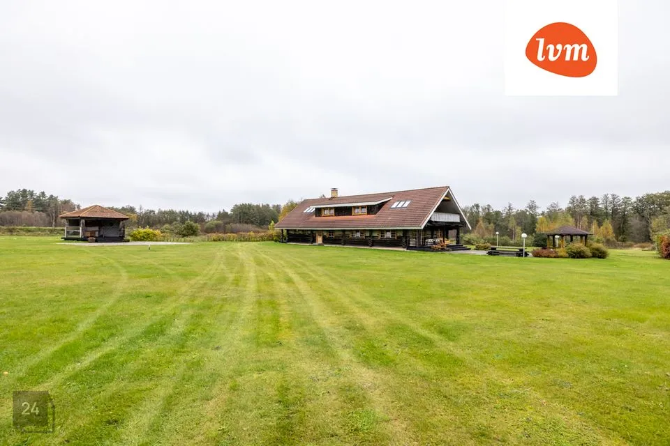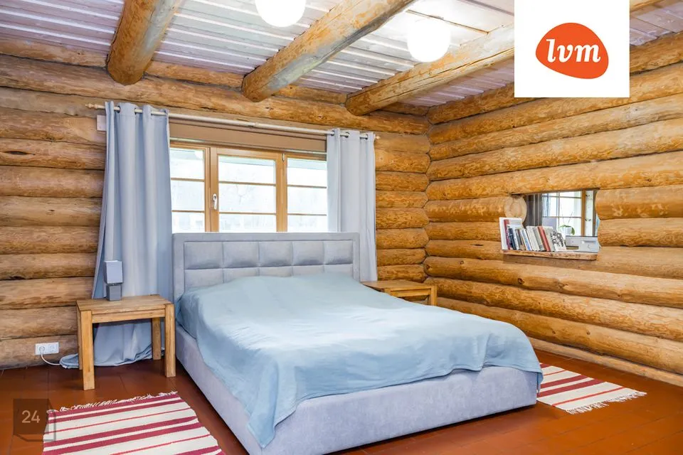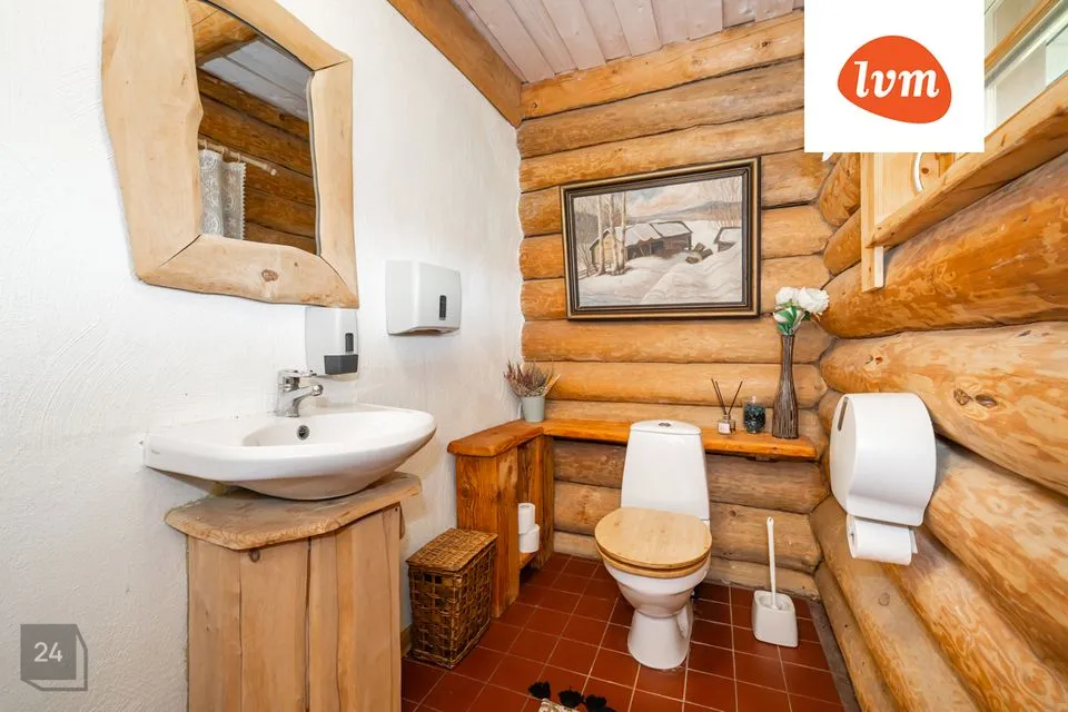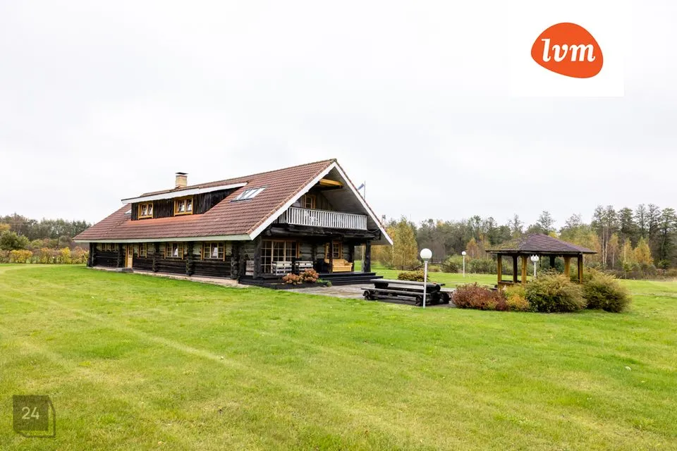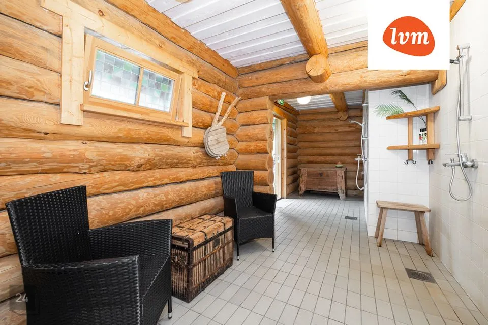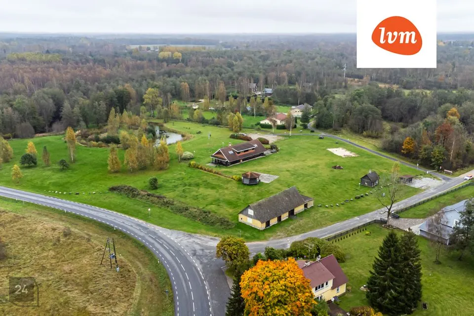 Tunniajalise autosõidu kaugusel Tallinnast asub 2,92 ha suurune krunt, millele on ehitatud kahekordne palkmaja, väliköök, 162m² kuur, parkla ning väike palkmaja, mis varasemalt on olnud kasutusel nii sauna kui ka töötoana. Hoovi serval voolab nii jõgi kui ka tiik, mille keskel on väike saar. Saarele saab ületades üht kahest kaarsillast.