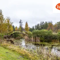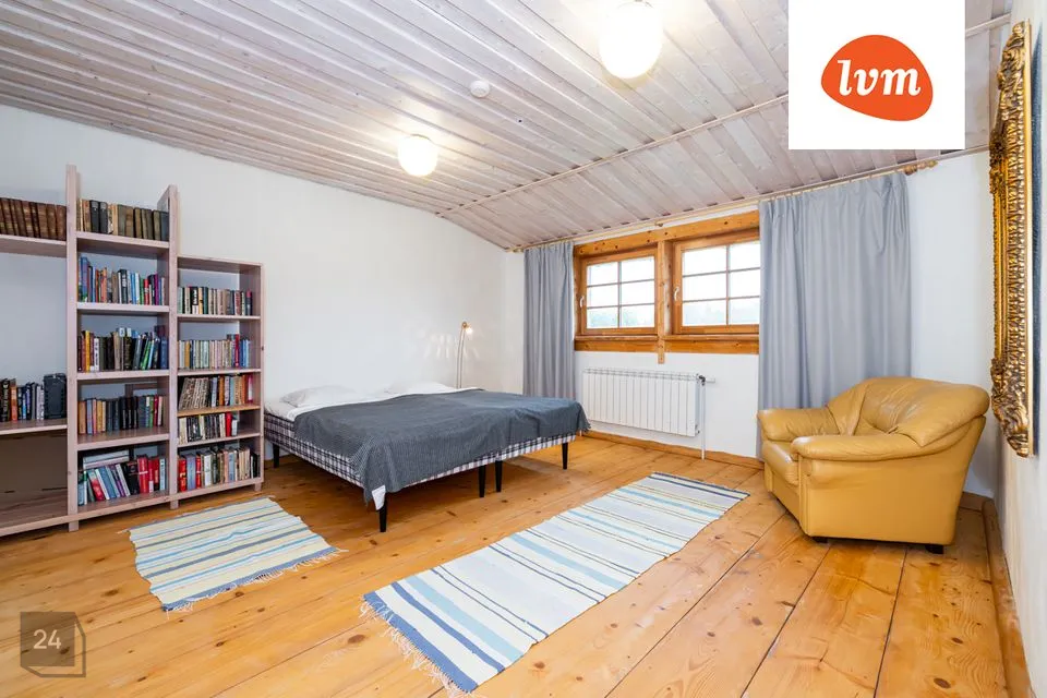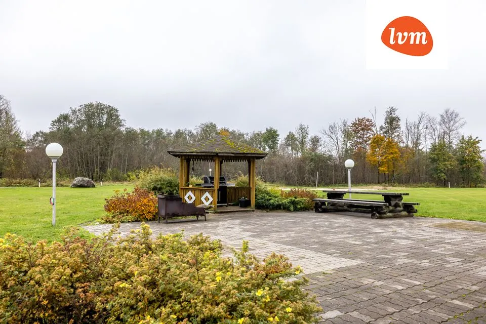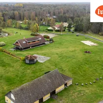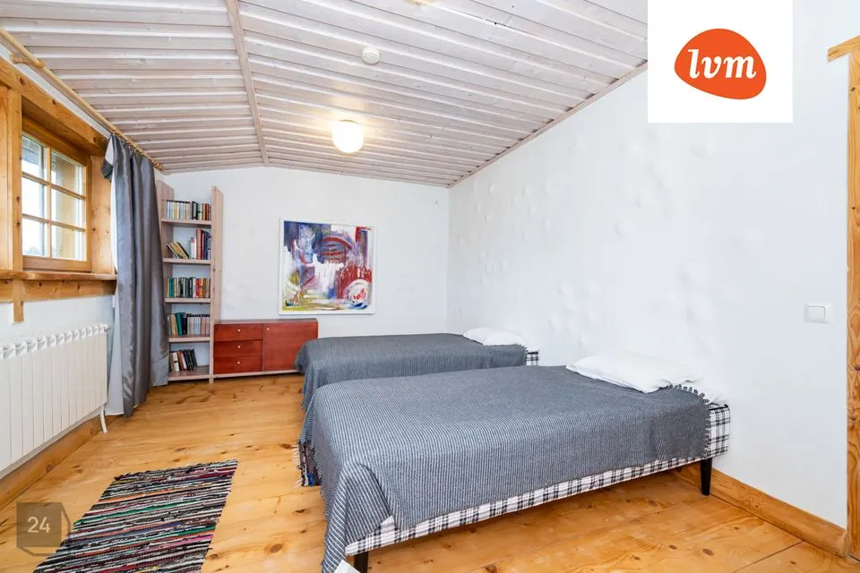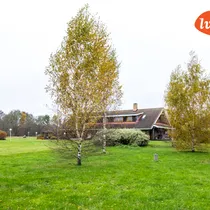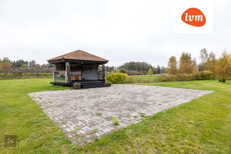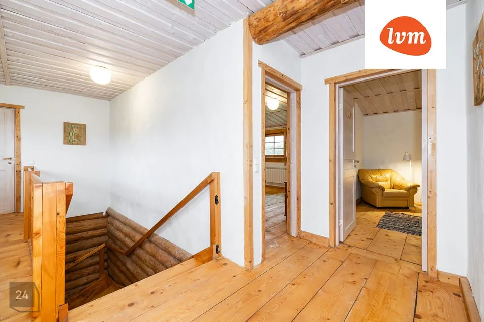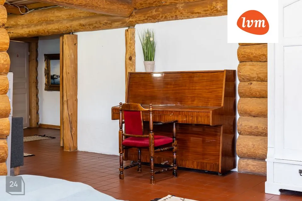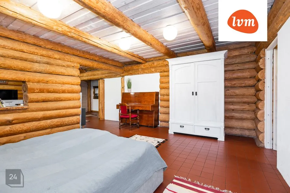 Tunniajalise autosõidu kaugusel Tallinnast asub 2,92 ha suurune krunt, millele on ehitatud kahekordne palkmaja, väliköök, 162m² kuur, parkla ning väike palkmaja, mis varasemalt on olnud kasutusel nii sauna kui ka töötoana. Hoovi serval voolab nii jõgi kui ka tiik, mille keskel on väike saar. Saarele saab ületades üht kahest kaarsillast.