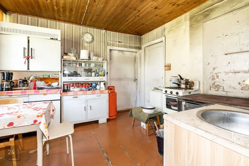 Ühekordne maja, millel eterniitkatus, vanad puitaknad, küttekoldeks puupliit ja ahi. Elutoas kamin, mis pole soojustsalvestav.