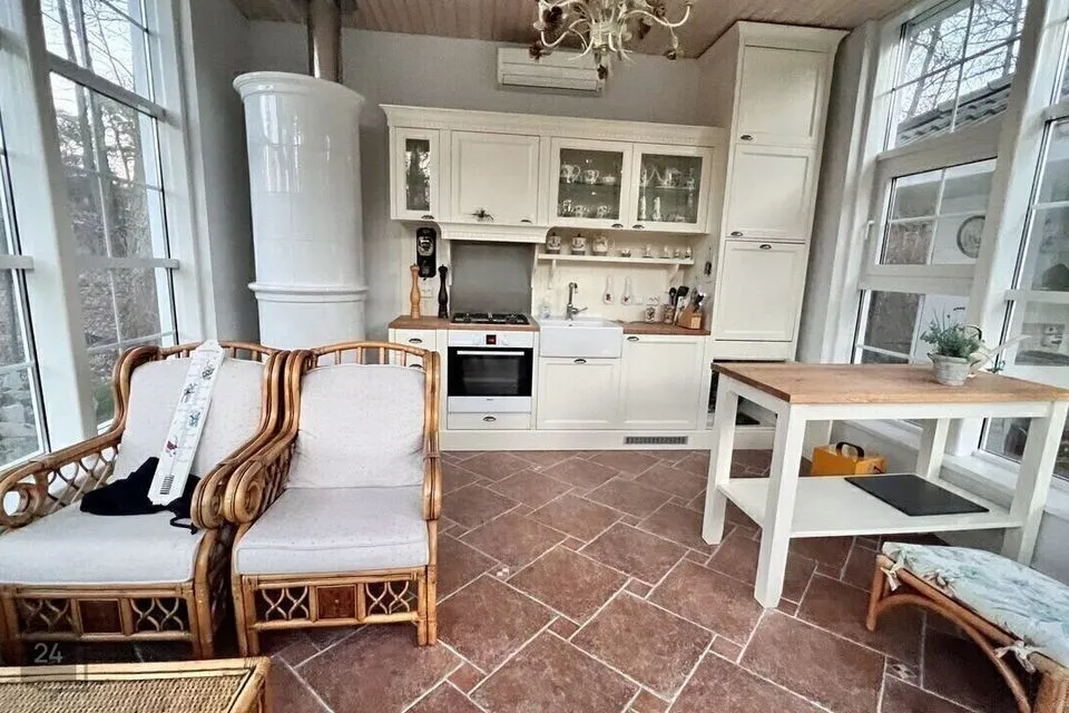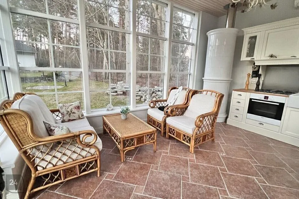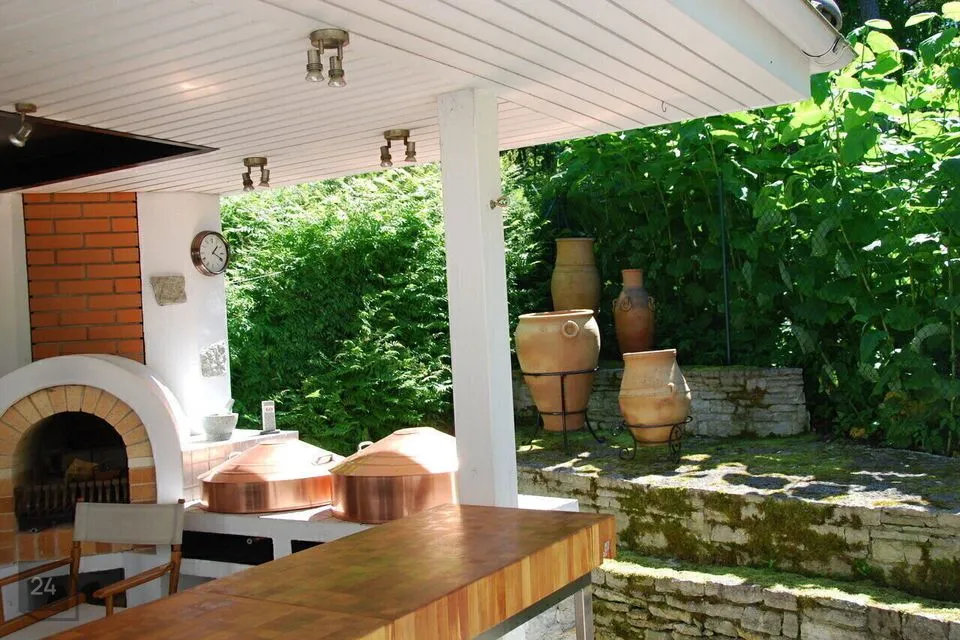 Oja ääres asub 18m2 suurune talveaed. Olemas köök koos tehnikaga, kiviahi, õhksoojuspump. Talveaia kõrval asub eraldiseisev väliköök, kus on grillahi, suitsuahi ja wok-pannid.