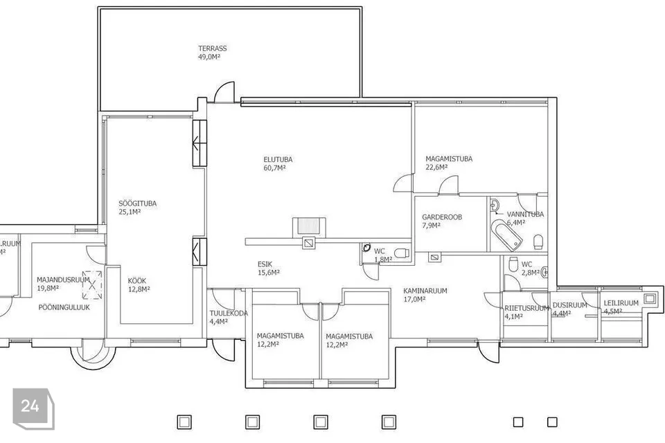 1-kordse eluhoone suurus on 239m2. Peauksest sisenedes satute avarasse esik/garderoobi, kuhu saab mugavalt jätta üleriided ja vahetusjalatsid. Edasi liigute avarasse elutuppa, kus suure kamina ääres on mõnus pere/sõprade/partneritega lõõgastuda. Avar köök koos söögitoaga annab suurpärase võimaluse lõuna- või õhtusöökide pidamiseks ka suuremale seltskonnale. Ilusaid suveõhtuid saab veeta ca 50m2 suurusel terrassil nautides imelist vaadet vulisevale ojale ja päikeseloojangule. Majas on avar köök, majapidamisruum, söögituba, elutuba, mõnusalt suur magamistuba kust saab suurde vannituppa ja garderoobi, kabinet (varem oli 2 eraldi lastemagamistuba), saun koos dušširuumiga, 3 wc-d, esik/garderoob.